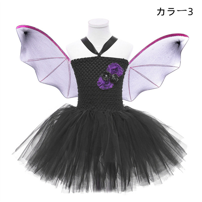 ハロウィン衣装 子供 女の子 コスプレ 魔女 魔法師 魔法使い ワンピース ドレス チュールワンピース 猫耳 つばさ しっぽ チュールワンピース セットアップ コスプレ衣装 文化祭 イベント