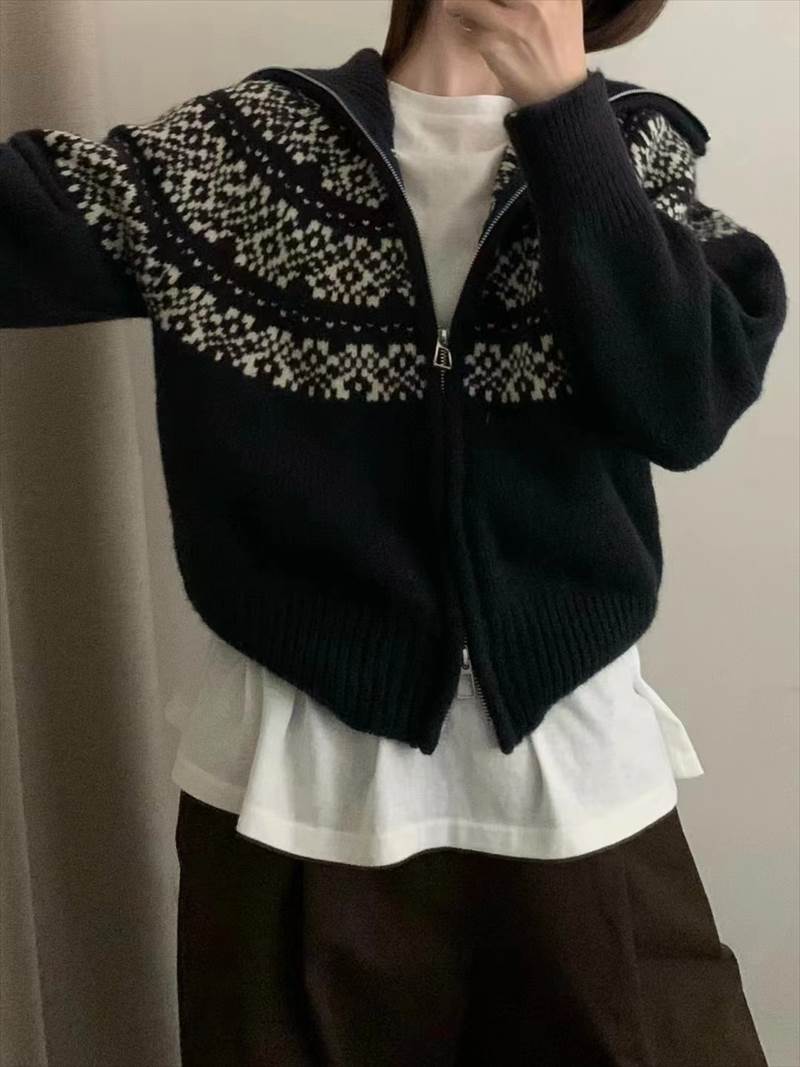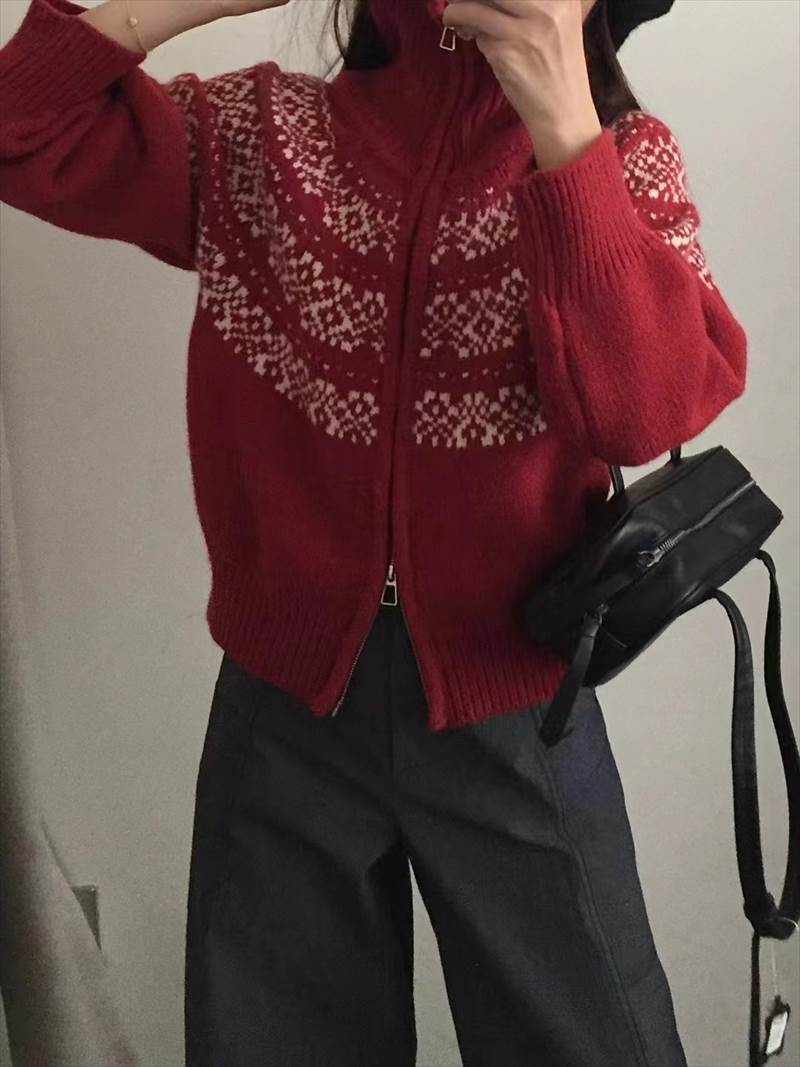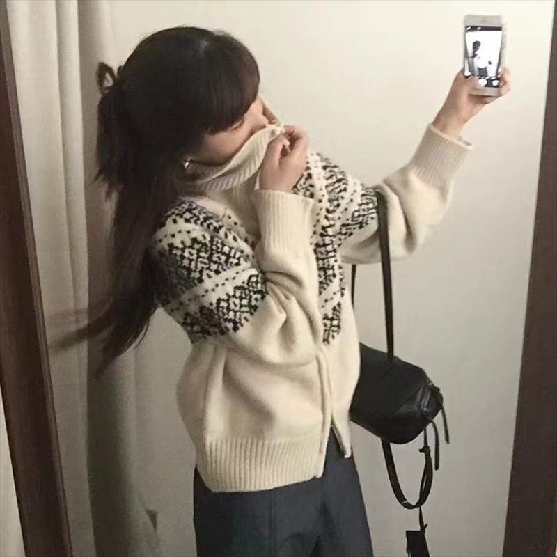トップス カーディガン レディース 長袖 ハイネック 前開き ダブルジップ ミディアム丈 ジャガードニット かわいい 大人可愛い きれいめ シンプル 上品 おしゃれ かっこいい カジュアル こなれ感 個性的 ラフ 主役級 存在感 抜け感 秋 冬 ベーシック ナチュラル キュート クール メンズライク 女性用 ママ OL 通勤 学生 通学 デート お出かけ お泊まり 女子会 旅行 アウトドア 休日 カフェ ショッピング コンパ レストラン 普段使い デイリー 着回し レイヤード 重ね着 ワンサイズ