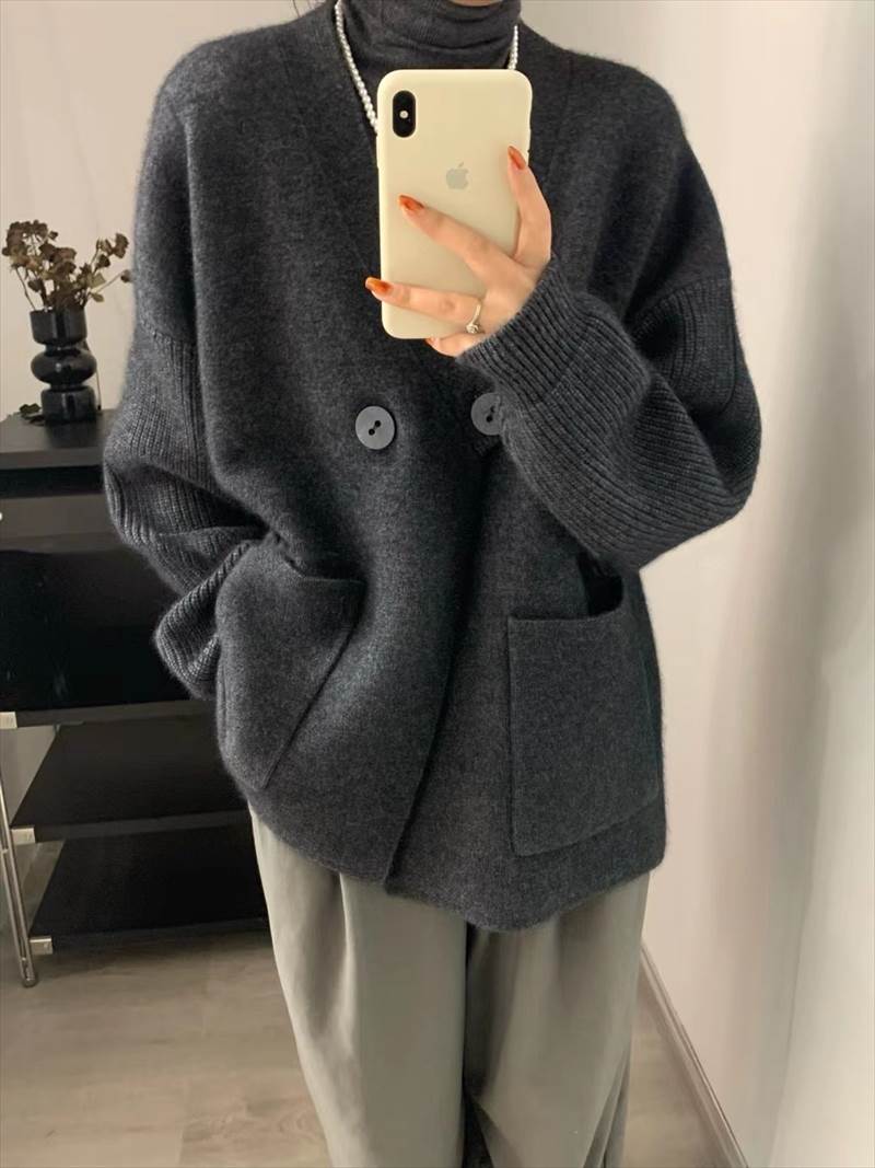 トップス カーディガン レディース 長袖 Vネック 前開き ダブルボタン ショート丈 ポケット かわいい 大人可愛い きれいめ シンプル 上品 おしゃれ かっこいい カジュアル こなれ感 個性的 ルーズ 主役級 存在感 抜け感 秋 冬 ベーシック ナチュラル キュート クール 清楚 女性用 ママ マタニティ OL 通勤 オフィス 学生 通学 デート お出かけ お泊まり 女子会 旅行 アウトドア 休日 カフェ ショッピング コンパ レストラン 普段使い デイリー 着回し レイヤード 重ね着 ワンサイズ
