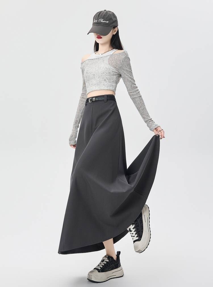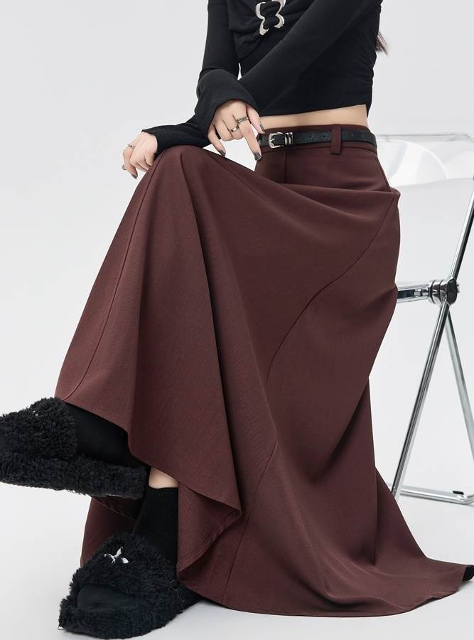 大人かわいいスタイルを演出する、フレアデザインのロングスカート。