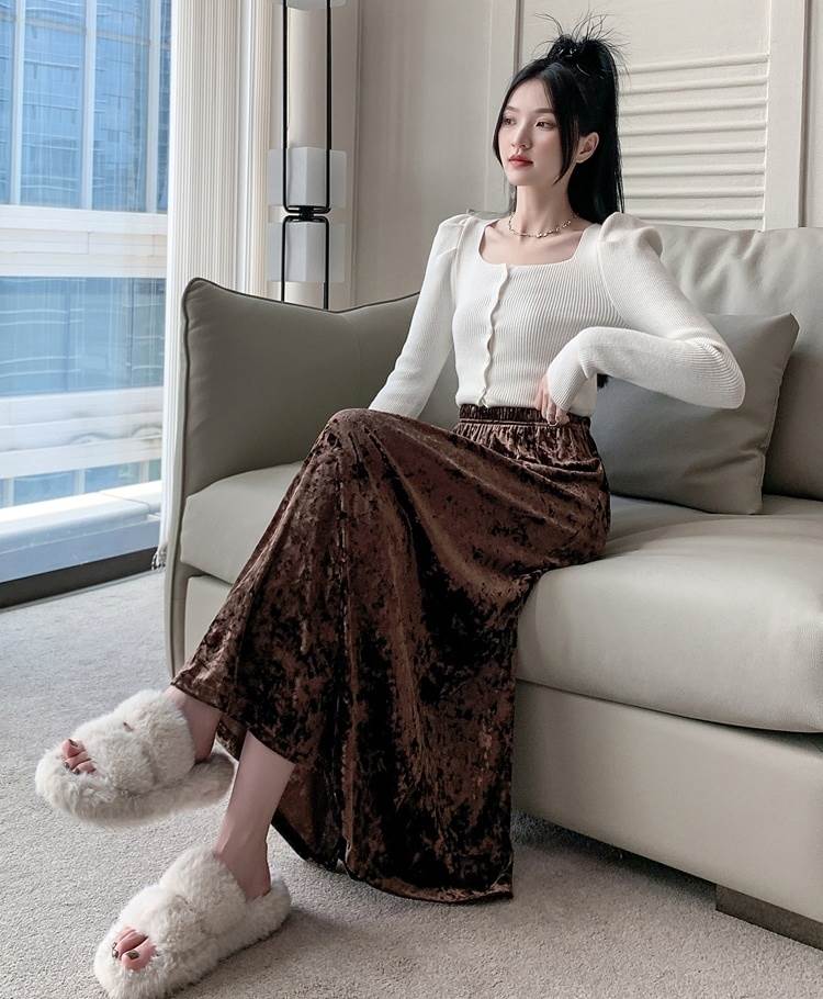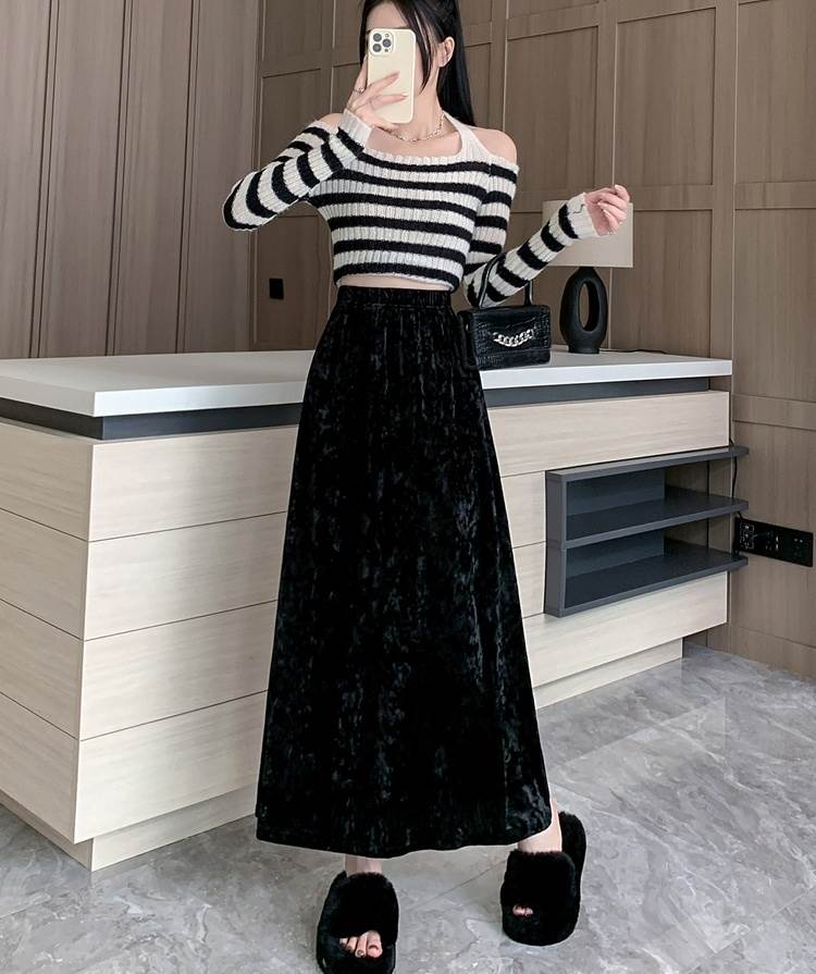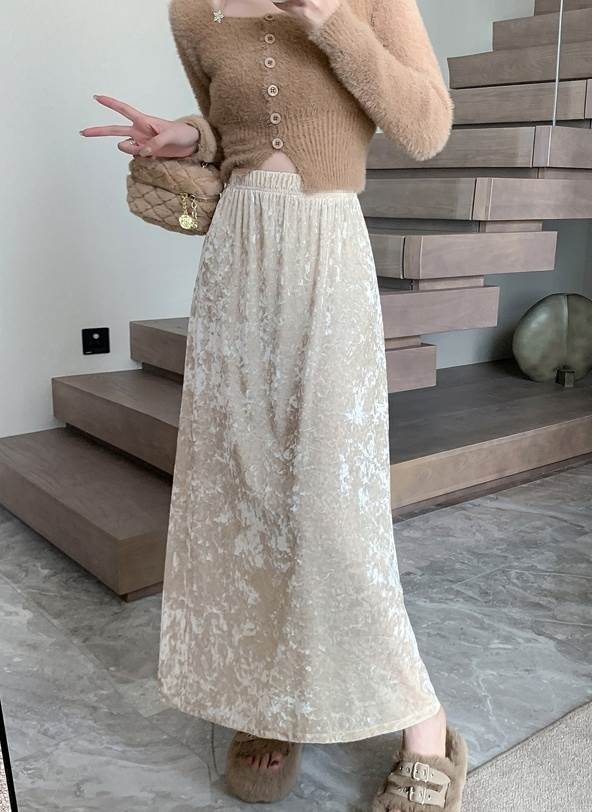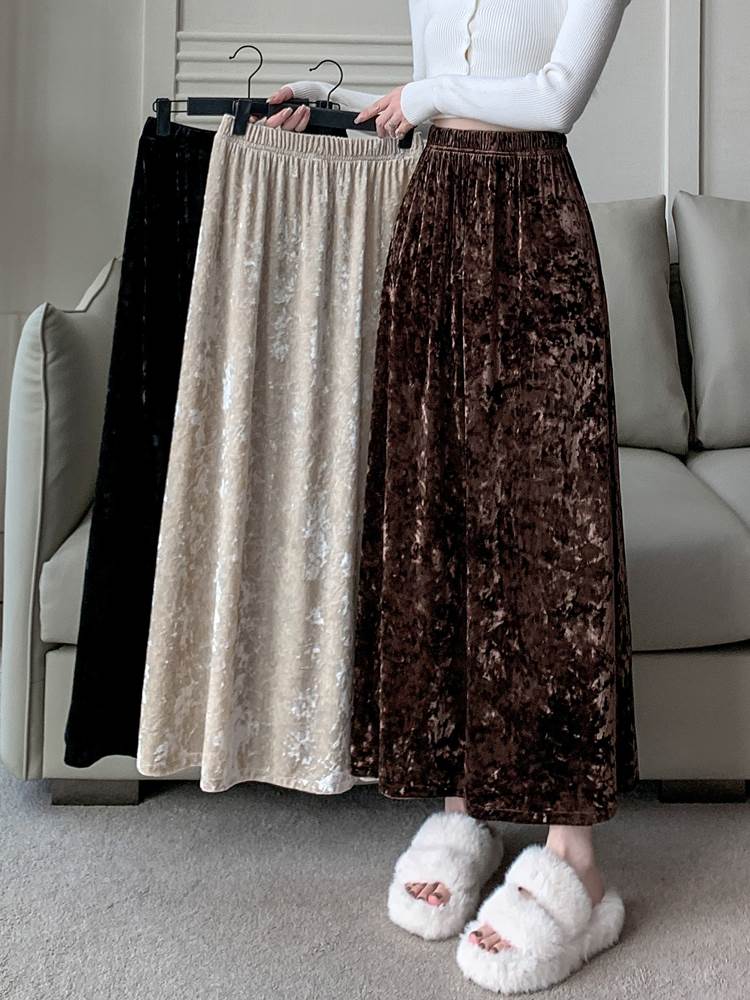 ボトムス スカート ロングスカート レディース Aライン ロング丈 ハイウエスト ウエストゴム ベルベット セミフレア かわいい 大人可愛い きれいめ シンプル 上品 おしゃれ かっこいい カジュアル こなれ感 個性的 レトロ 主役級 存在感 抜け感 秋 冬 ベーシック ナチュラル キュート クール エレガント 無地 女性用 OL 通勤 オフィス 学生 通学 デート お出かけ お泊まり 女子会 旅行 休日 カフェ ショッピング コンパ レストラン 普段使い デイリー 着回し 脚長 S M L XL モテ