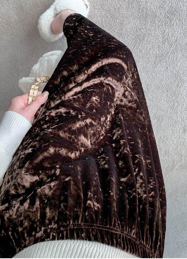ベルベット素材が秋冬シーズンにぴったりの温かみを与えつつ、シンプルで上品な印象を醸し出します。