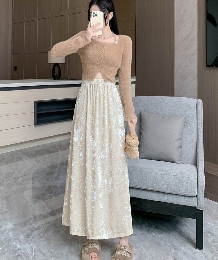 ベロア スカート ロング レディース