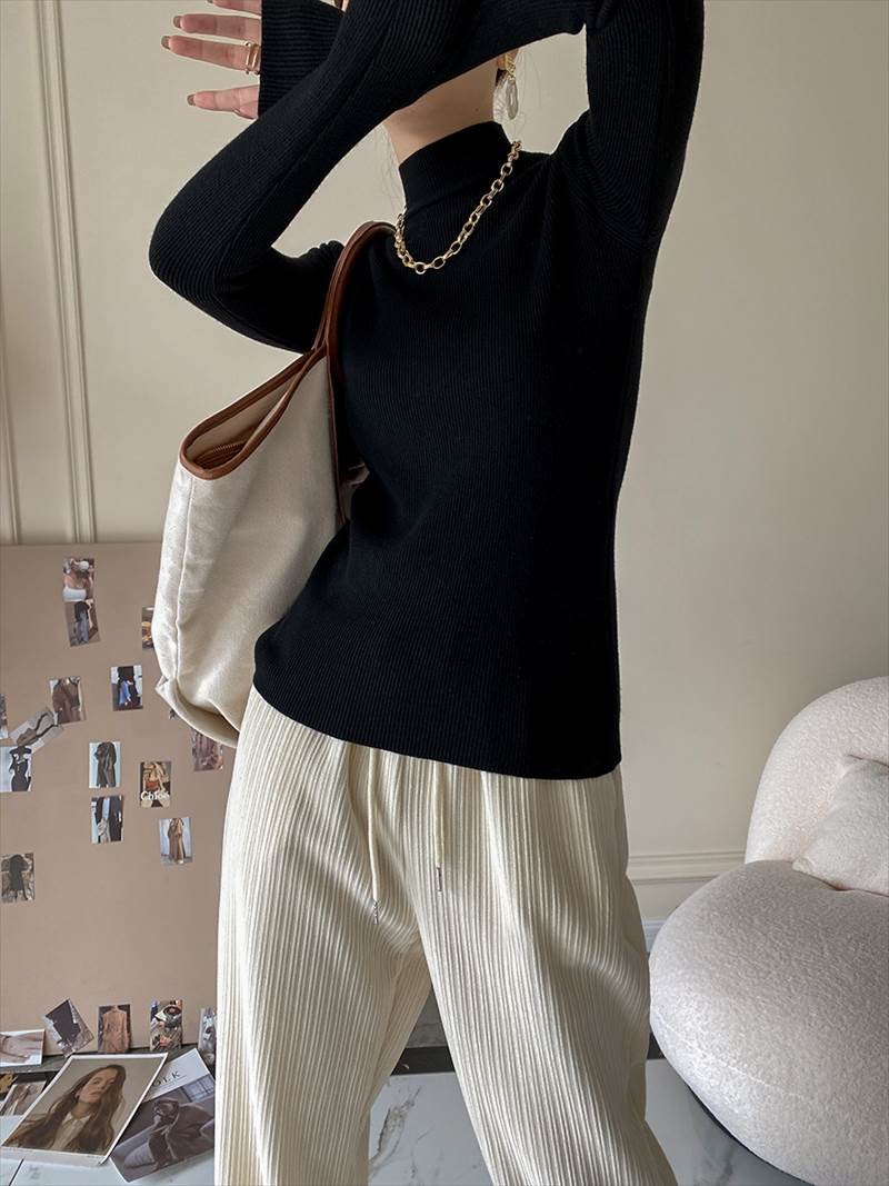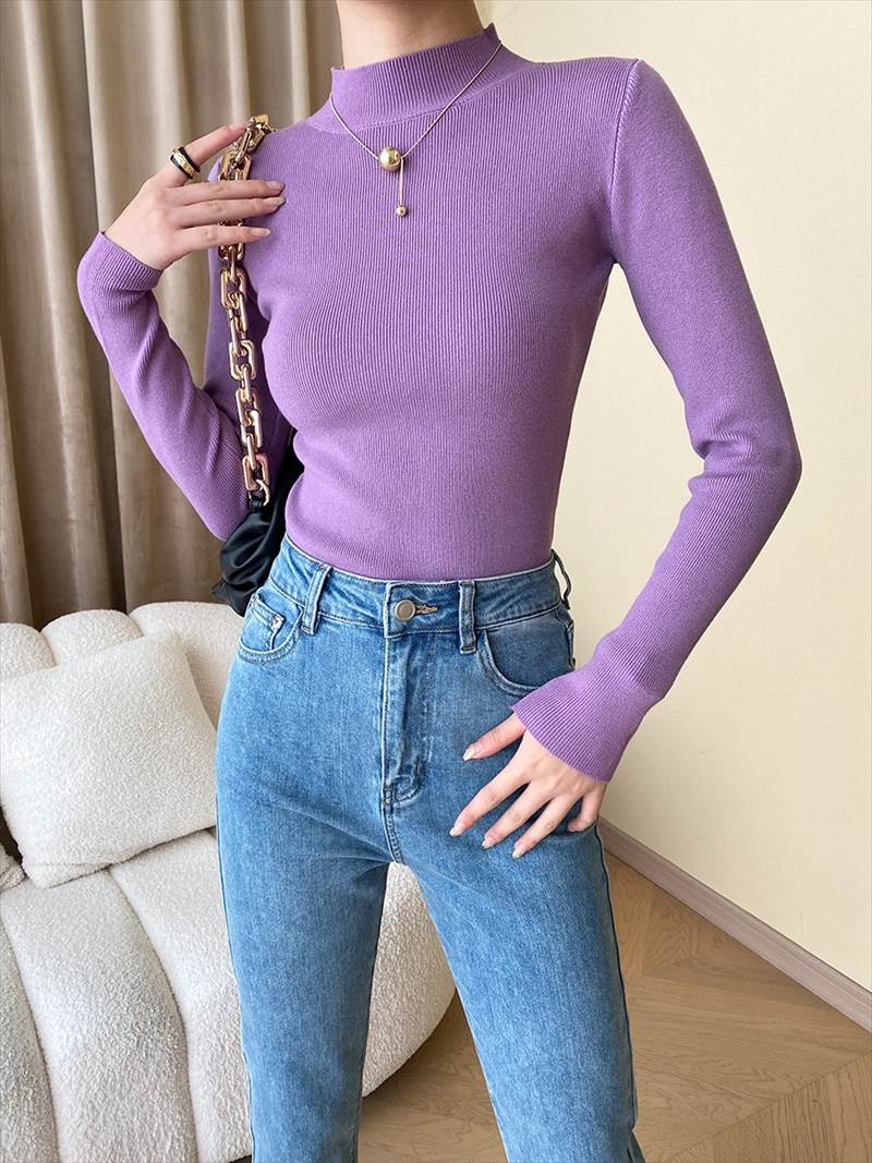 ニット トップス レディース 長袖 セーター リブ プルオーバー ハイネック タートル タイト ぴったり 大きいサイズ きれいめ シンプル 秋 冬 ベーシック 黒 白 パープル グリーン 8色