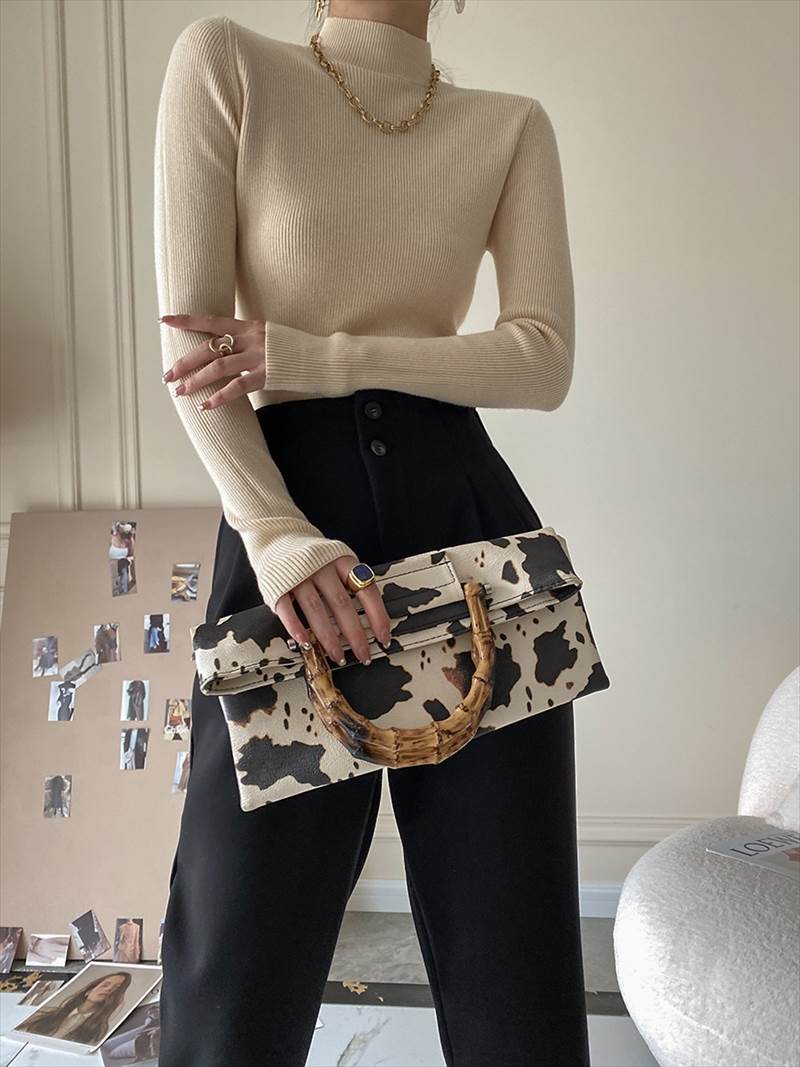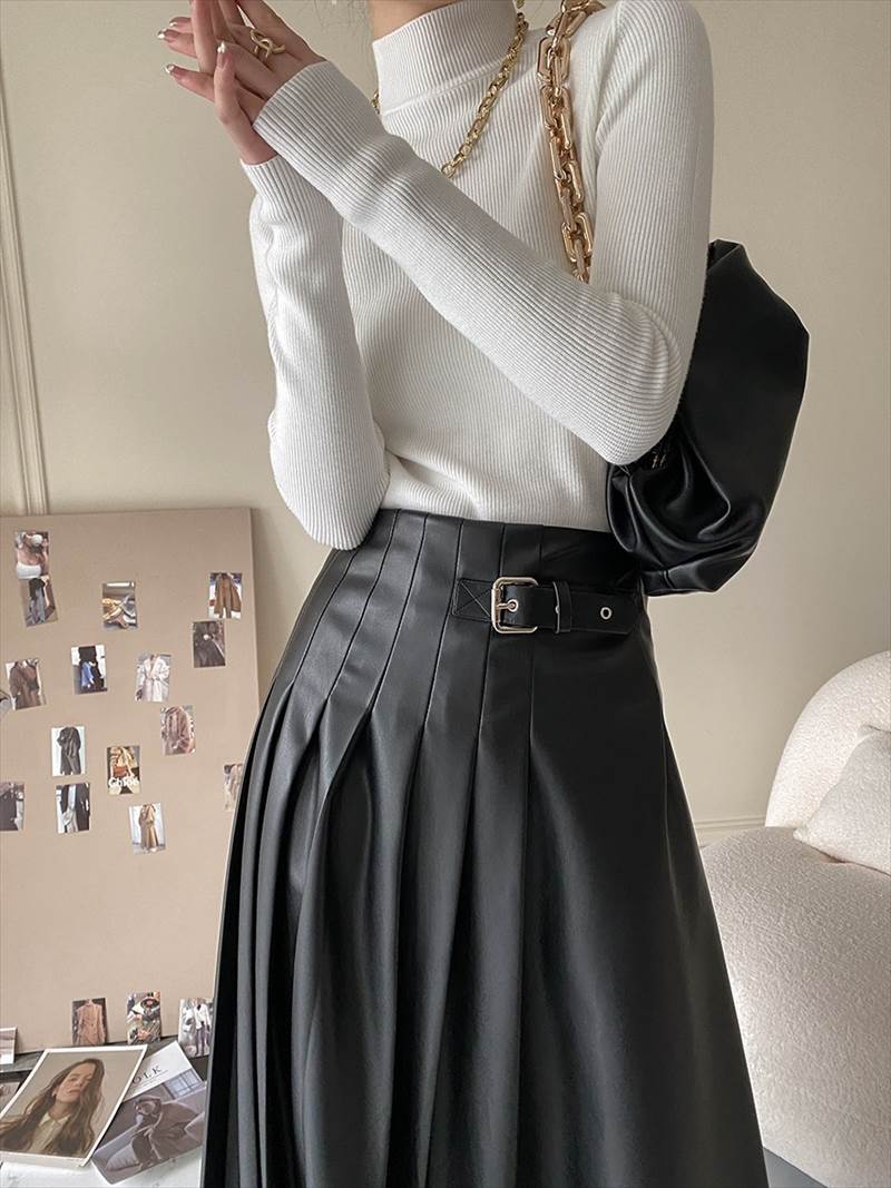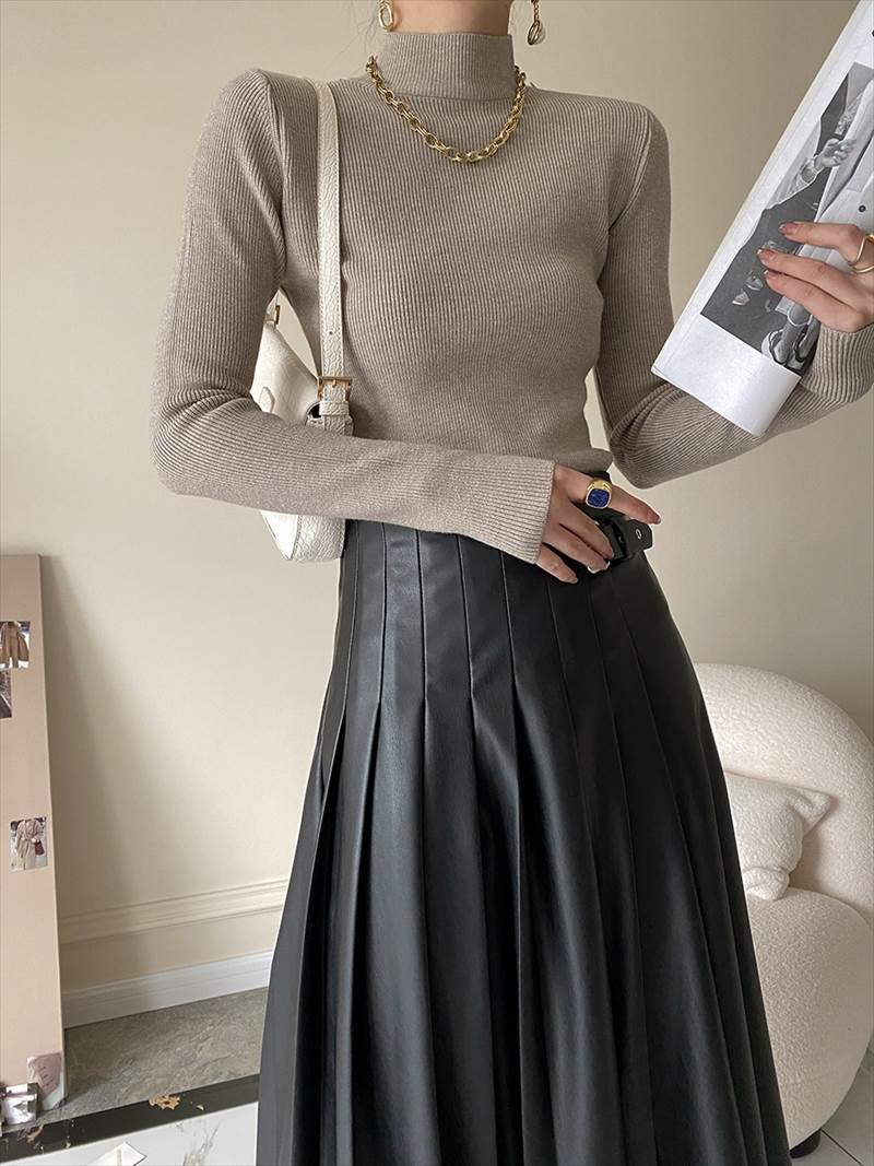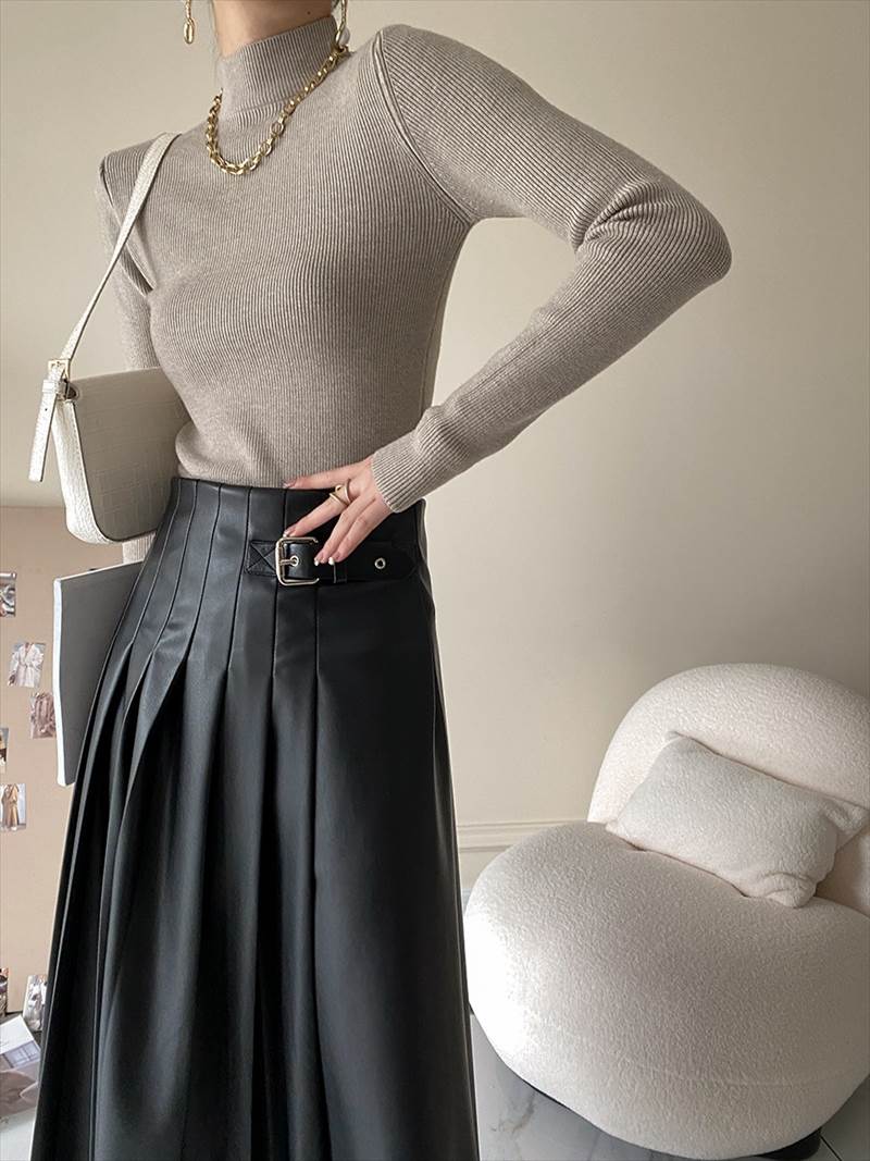 大人可愛いを演出する ニットソーは、爽やかなハイネックデザインが特徴のミディアム丈プルオーバーです!