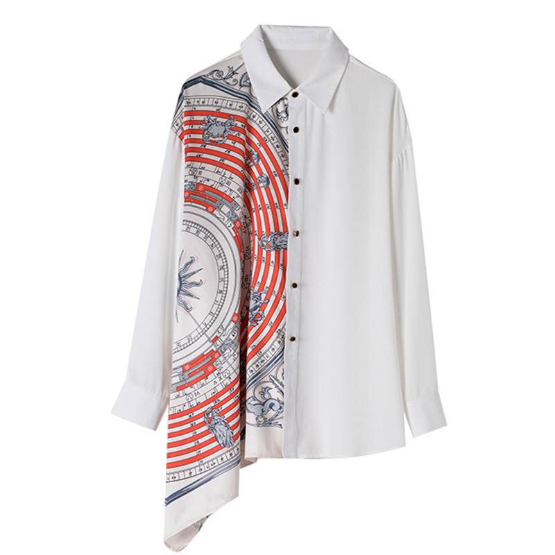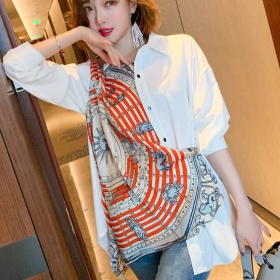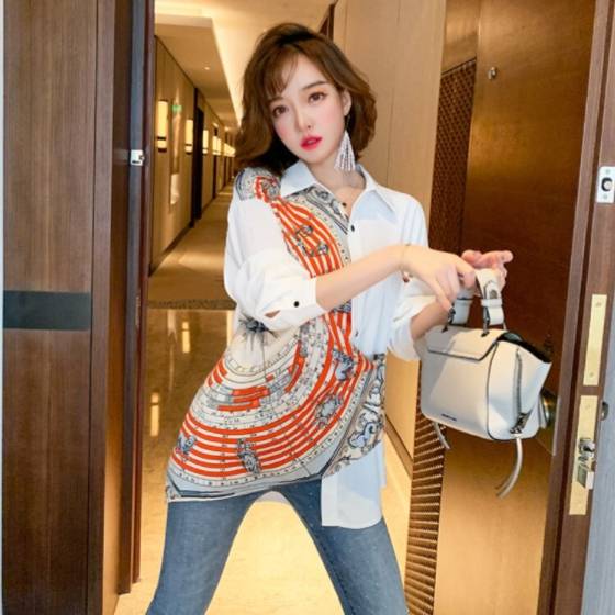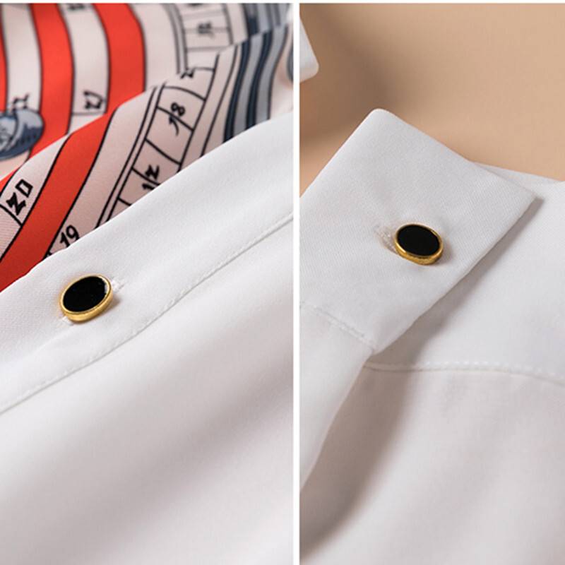 トップス レディース シャツ ブラウス 七分袖 柄 襟付き 個性的 レトロ 春 夏 秋 大人 かわいい 上品 きれいめ お洒落 シンプル カジュアル ナチュラル フェミニン