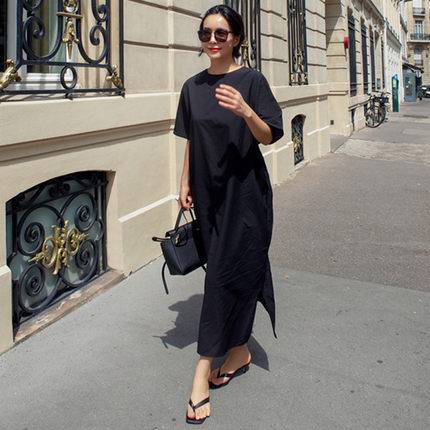 半袖バックシャンワンピース ワンピース フレアワンピース ロング ロング丈 袖あり 半袖 ラウンドネック スリット バックシャン バックコンシャス 綿 ポリエステル かわいい 大人可愛い きれいめ シンプル カジュアル 大人 おしゃれ お洒落 レトロ 大人可愛い 大人女子 ラブリー キュート ガーリー 主役級 存在感 無地 春 夏 10代 20代 30代 レディース 学生 通学 デート お出かけ 女子会 休日 リゾート 旅行 着回し 普段使い 韓国 韓国系 サイズ S M L XL 黒 ブラック