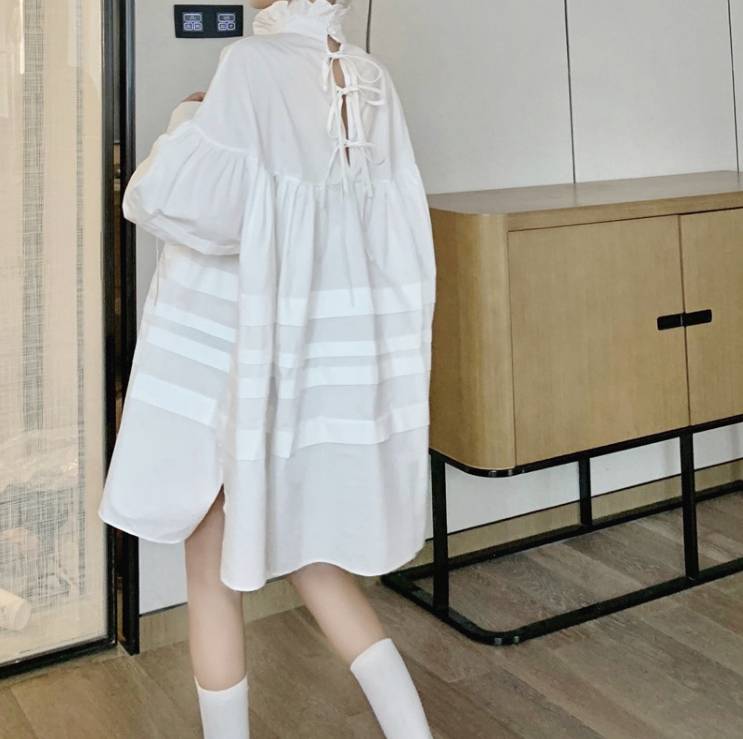 シアースリーブ ドッキングシャツ ボウタイシャツブラウス