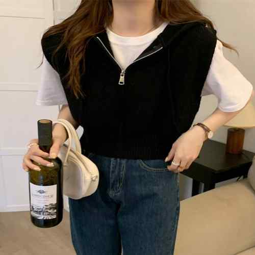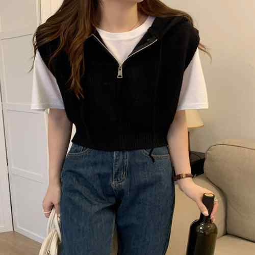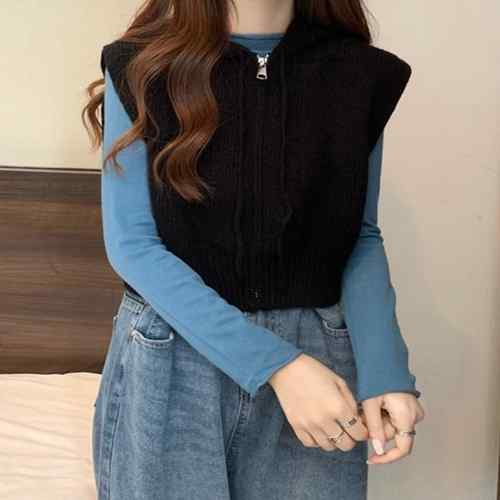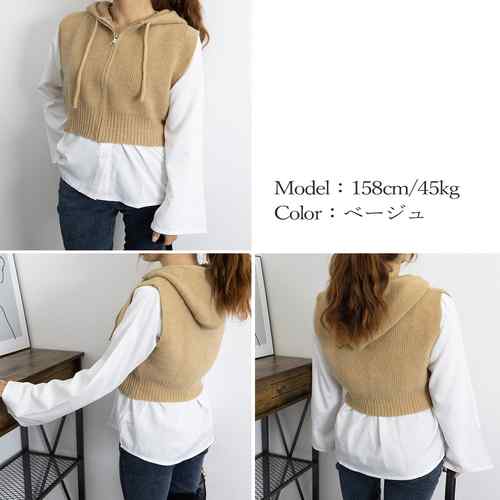 ニットジレレディース 重ね着 ノースリ