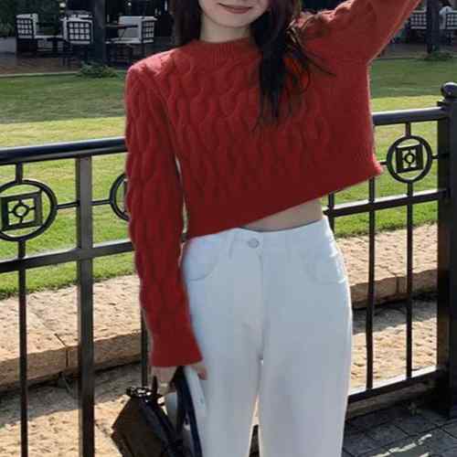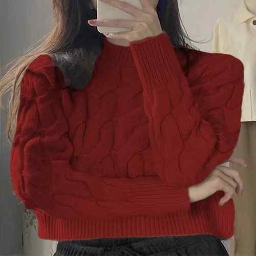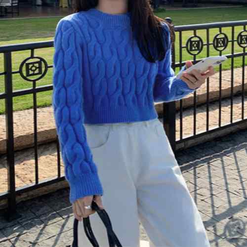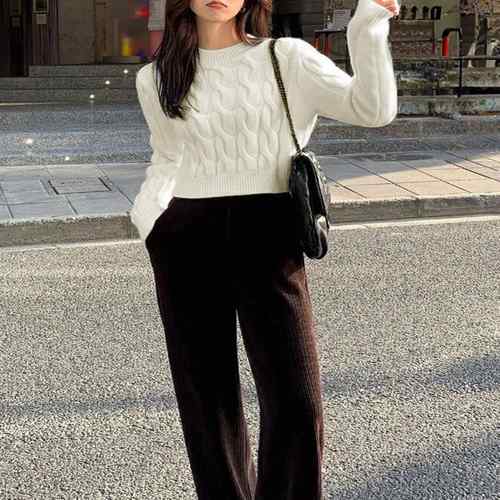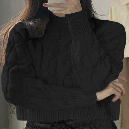 ケーブルニット ラウンドネック プルオ