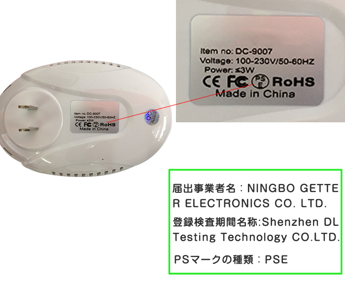 届出事業者名:NINGBO GETTER ELECTRONICS CO.LTD