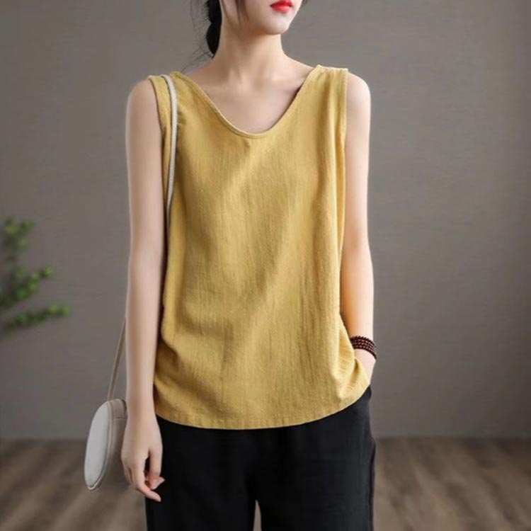 M~3XL Vネック 綿麻キャミソール
