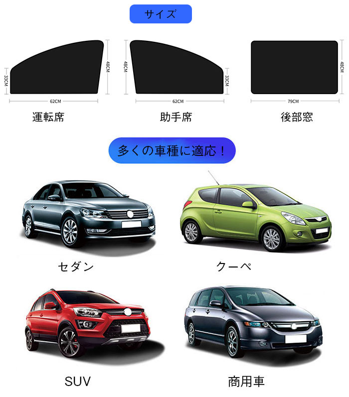 車用カーテン マグネット 遮光 4枚セ