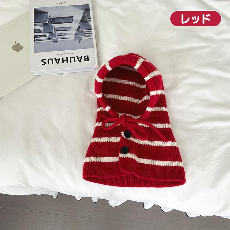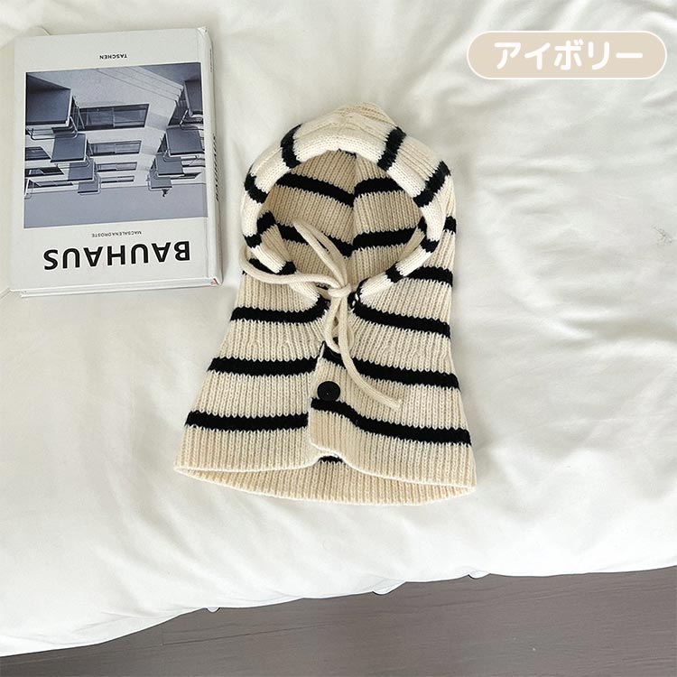 ニット帽 ストライプ バラクラバ 女の