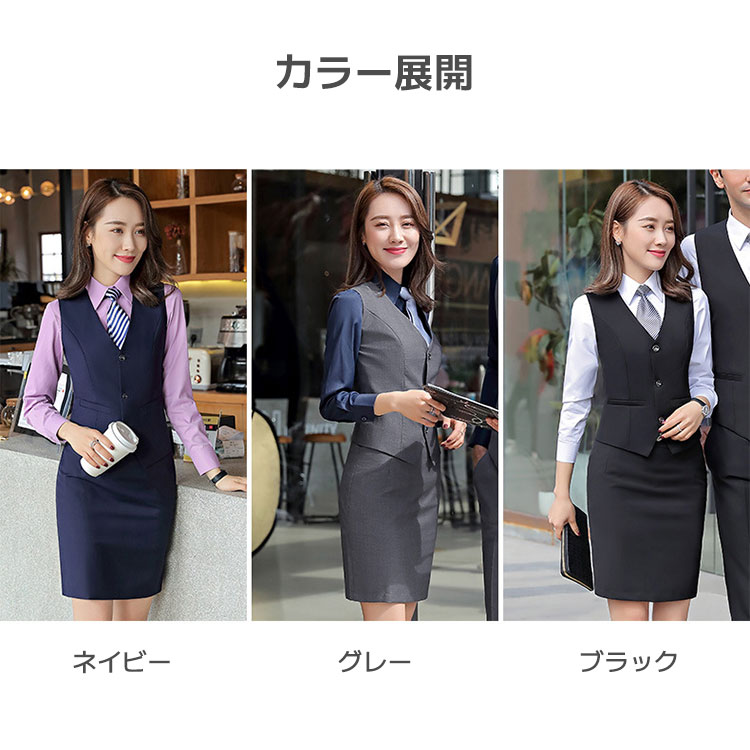 カラー: ブラック(ベスト単品) ネイビー(ベスト単品) グレー(ベスト単品) ブラック(ベスト+スカート) ネイビー(ベスト+スカート) グレー(ベスト+スカート)