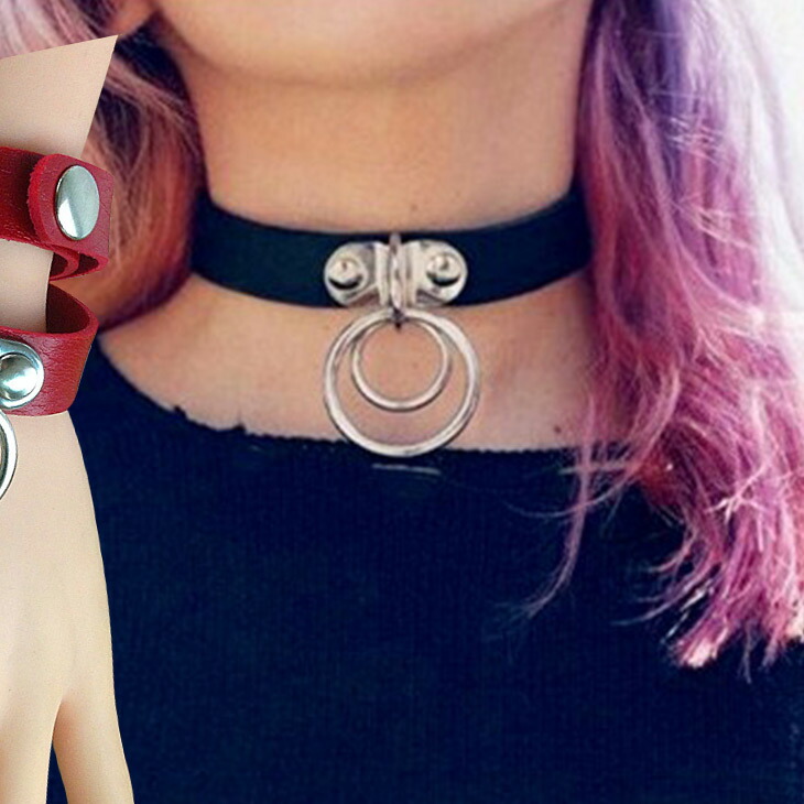 ダンス用 レザーチョーカー ペンダントネックレス アクサセリー 首輪&ブレスレット ハロウィン クリスマス コスプレ 忘年会☆首筋をスラっと魅せるレザーチョーカー☆