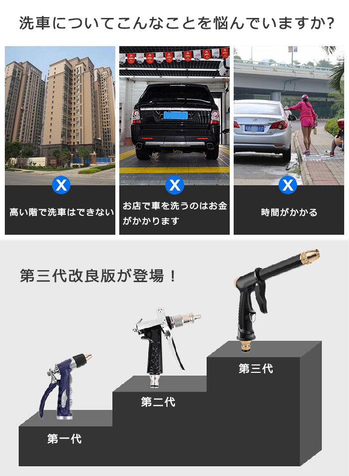 高圧洗浄ノズル 洗車 伸びるホース 洗