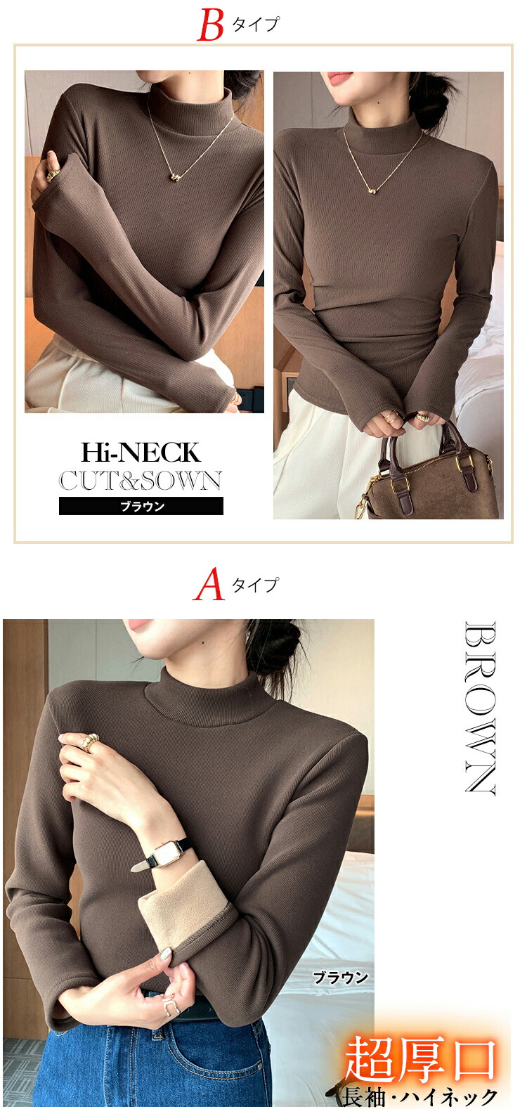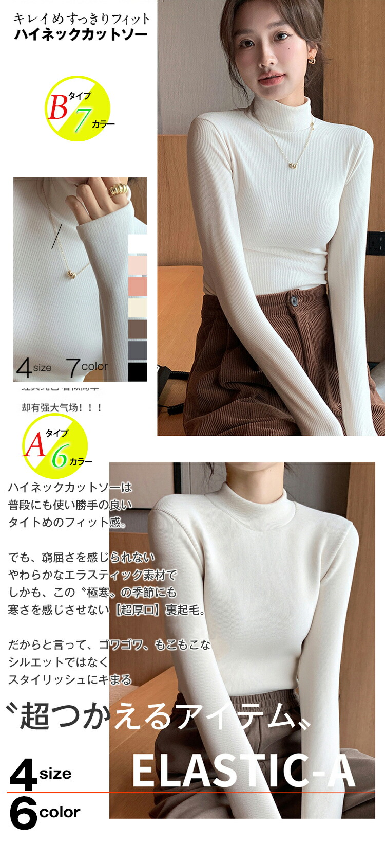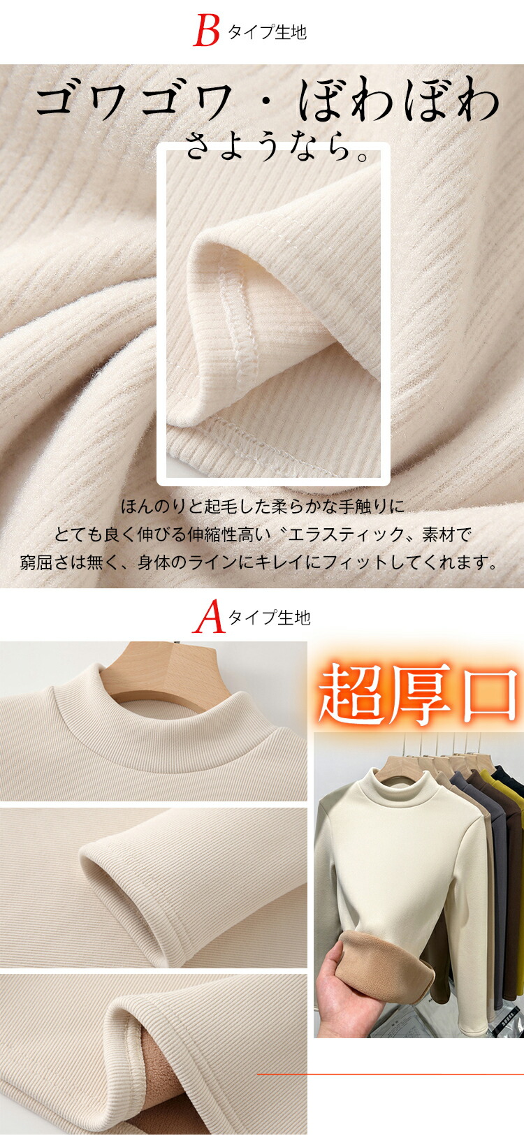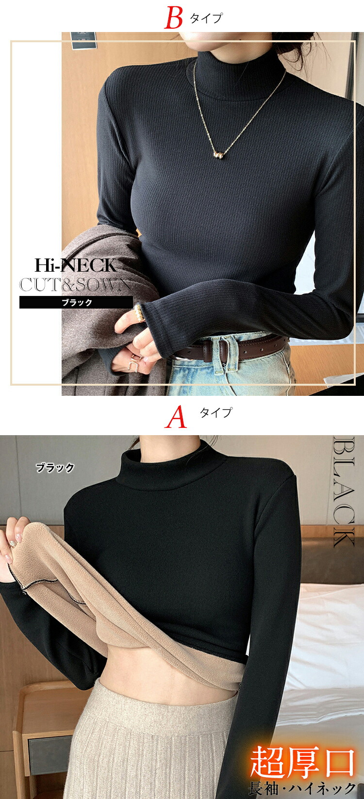 選べる2タイプ 両面起毛 ハイネックプ