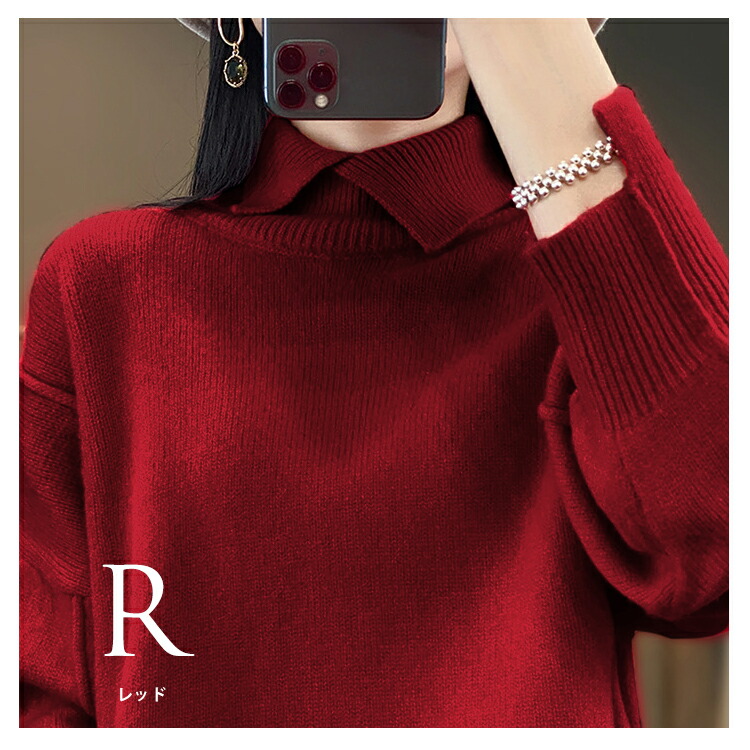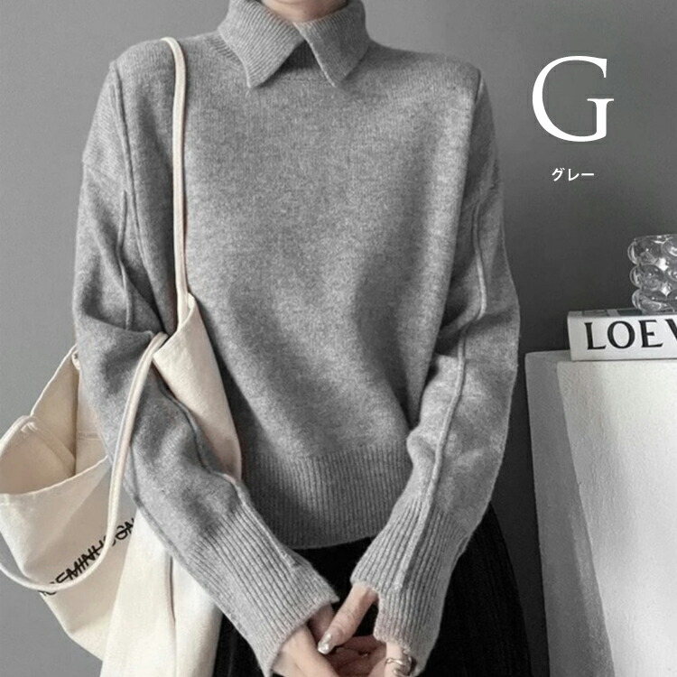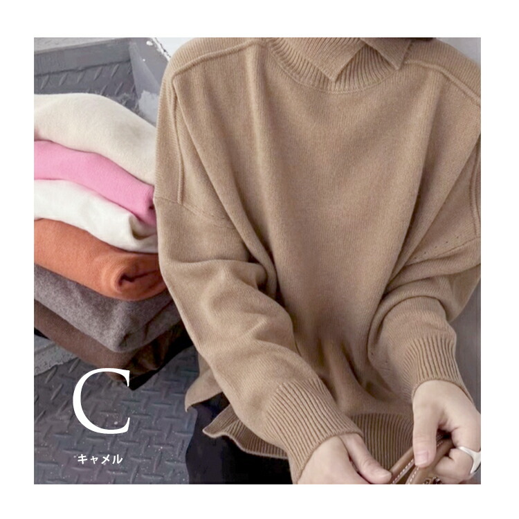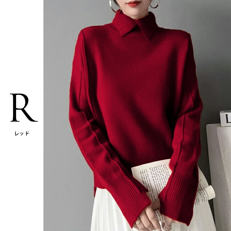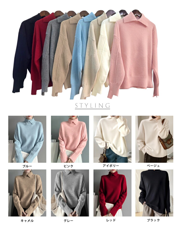 ■全8カラーのやわらかい”襟高”レディースニット■