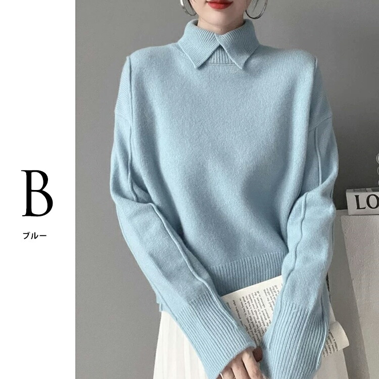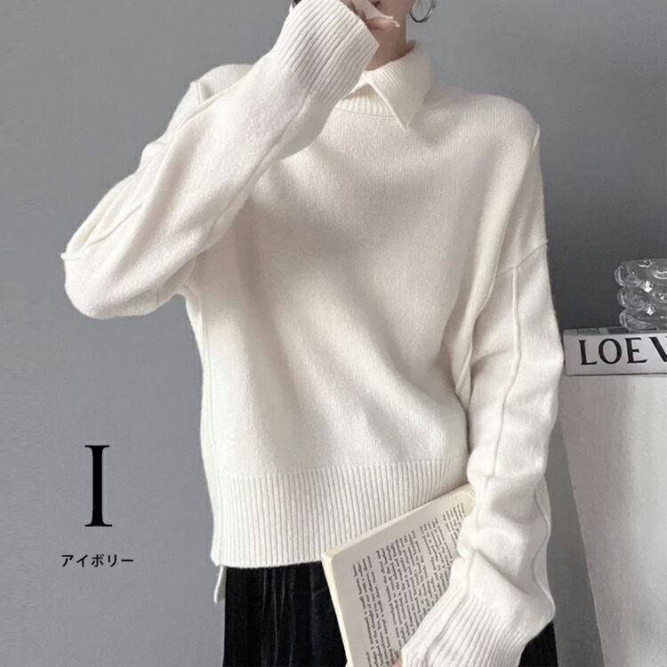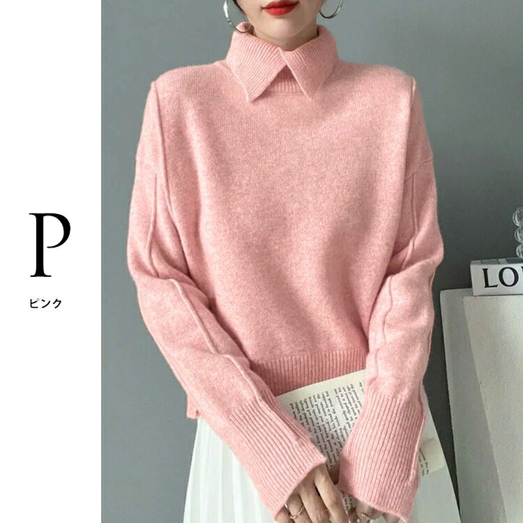☆2点目300円OFFクーポン☆ レディーズ 秋冬 ポロカラー ニット 襟高 ニットセーター レディーストップス レディースニット 秋カラー 長袖 プルオーバー ミディアム トップス セーター