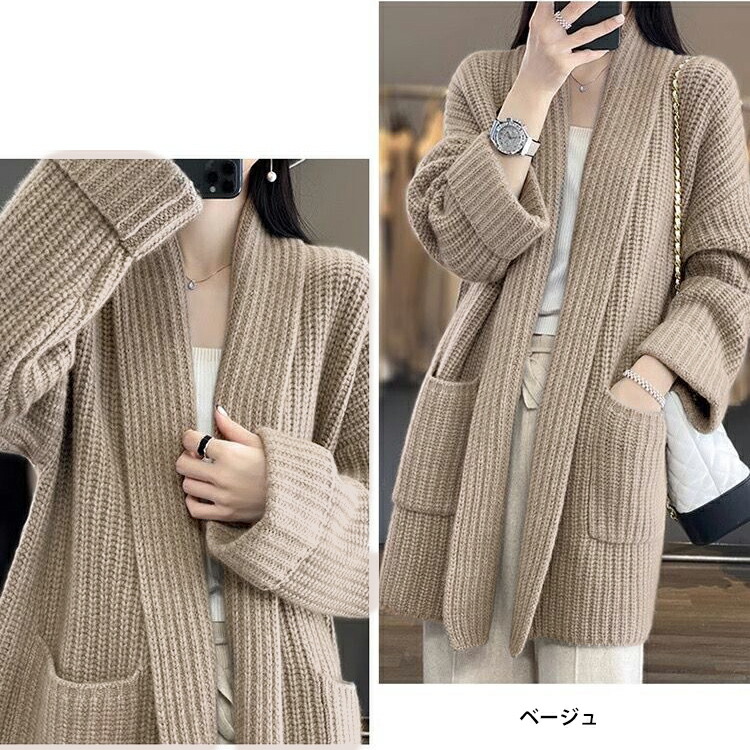 着回ししやすいデザインとシルエットのカーディガン レディーズ 秋冬 ショールカラー カーディガン レディース ニット ガウン アウター 秋カラー ミディアム