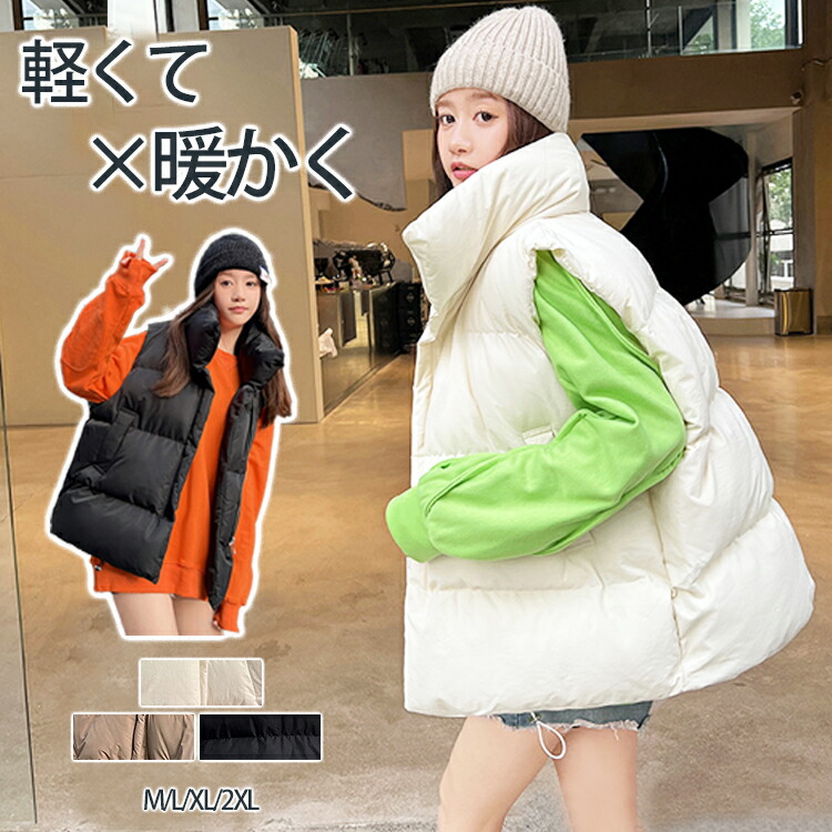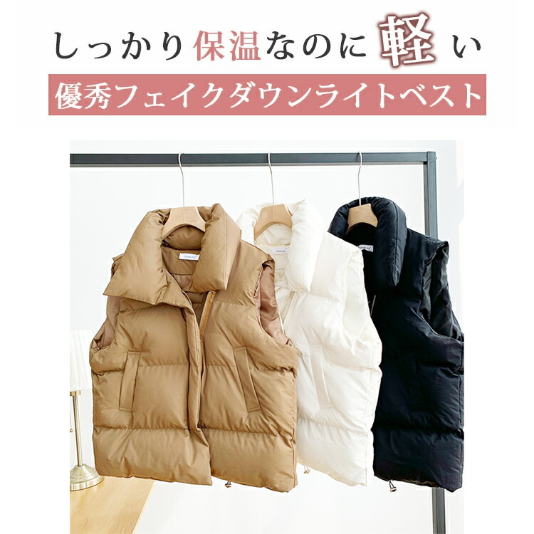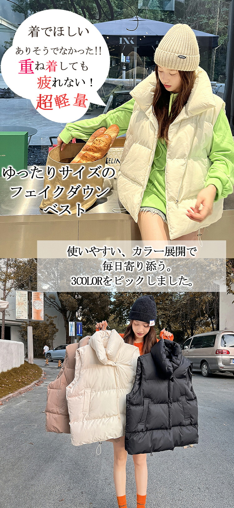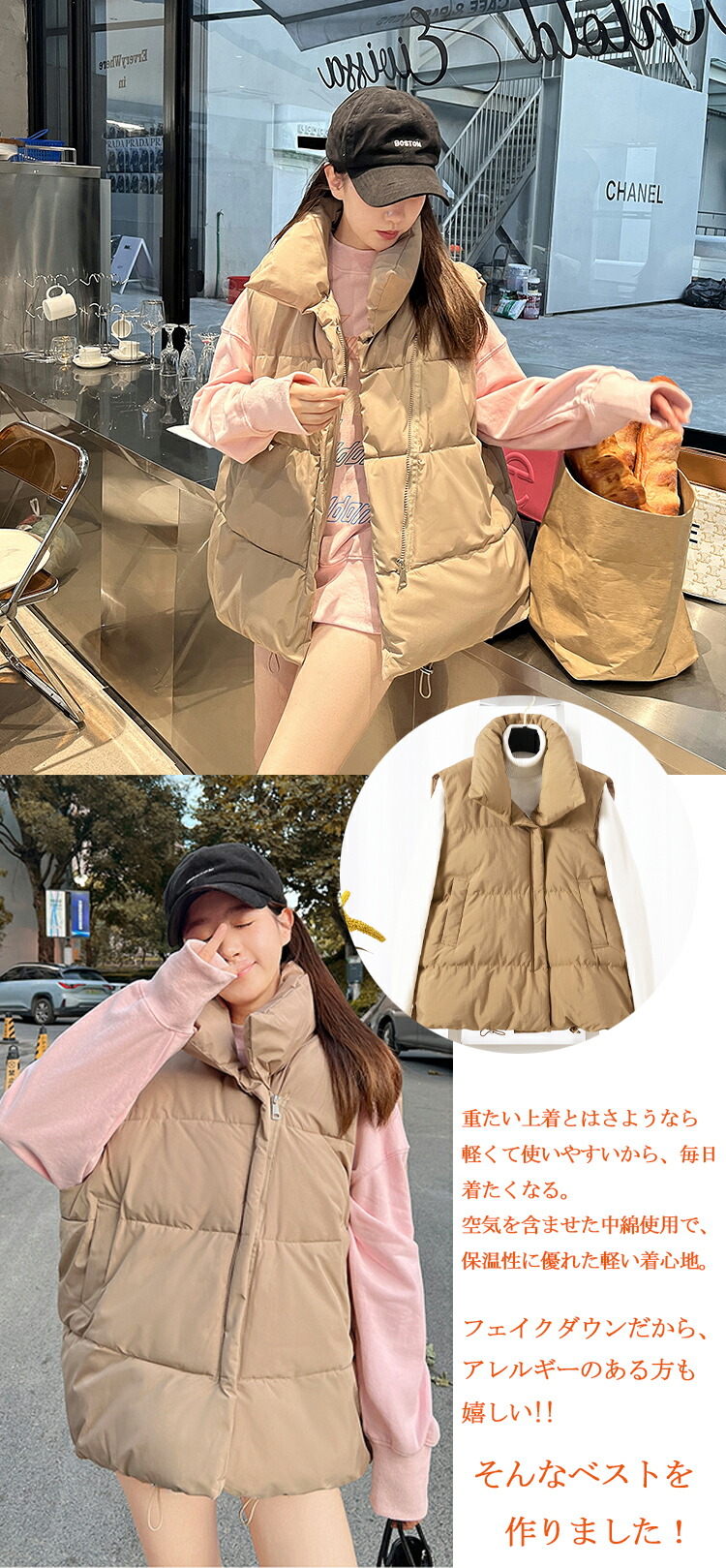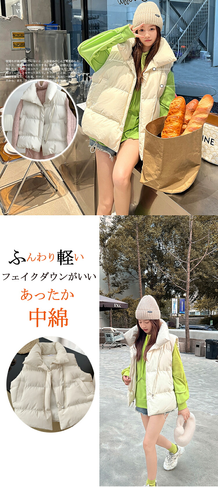 ☆2点目300円OFFクーポン☆ レディース 秋冬 アウター ジャケット フェイクダウン レディースアウター ライトベスト 中綿 上着 羽織り ハイネック 軽量 ノースリーブ ライトアウター