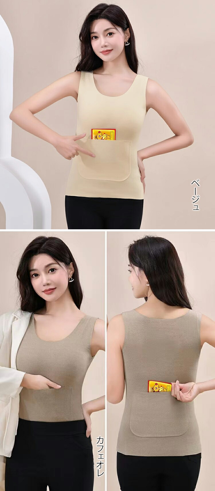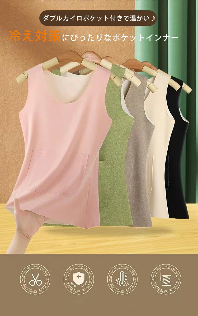 ■ダブルポケットで温かい。防寒シームレスタンクトップ■