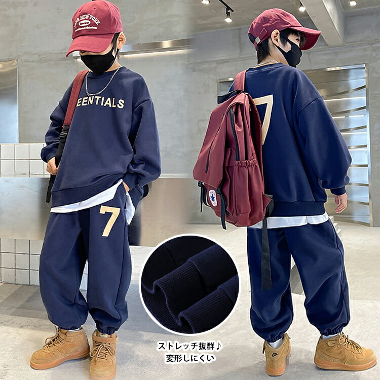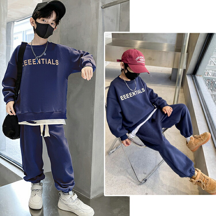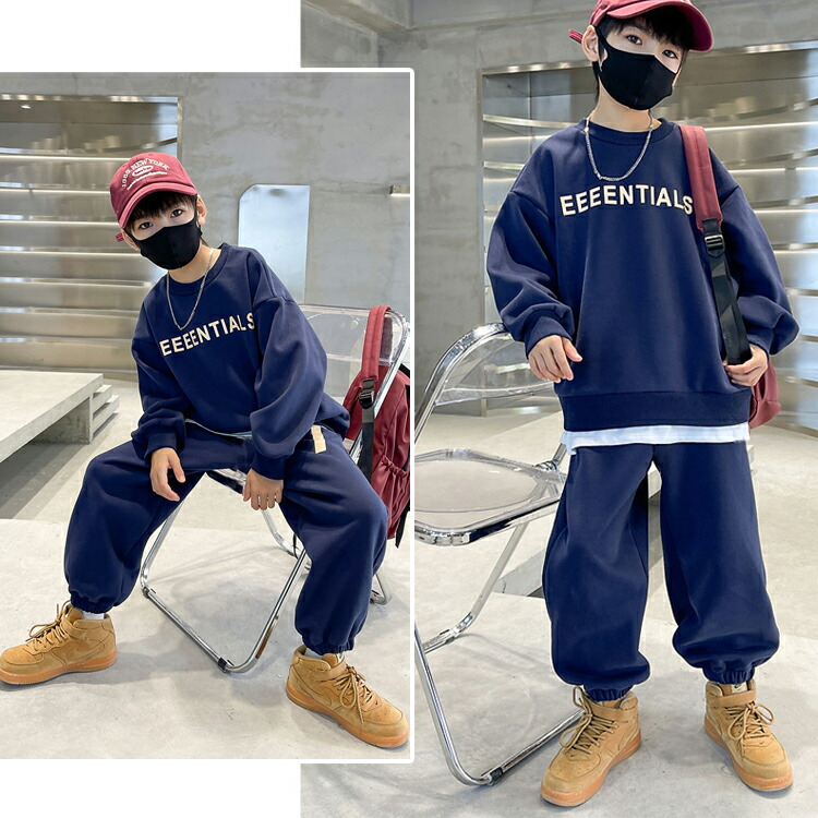 ☆2点目300円OFFクーポン☆ 2カラー 6サイズ キッズセットアップ 上下セット 秋冬 レイヤード風トップス パンツ キッズトレーナー キッズパンツ ポケット付き プリントロゴ 長ズボン