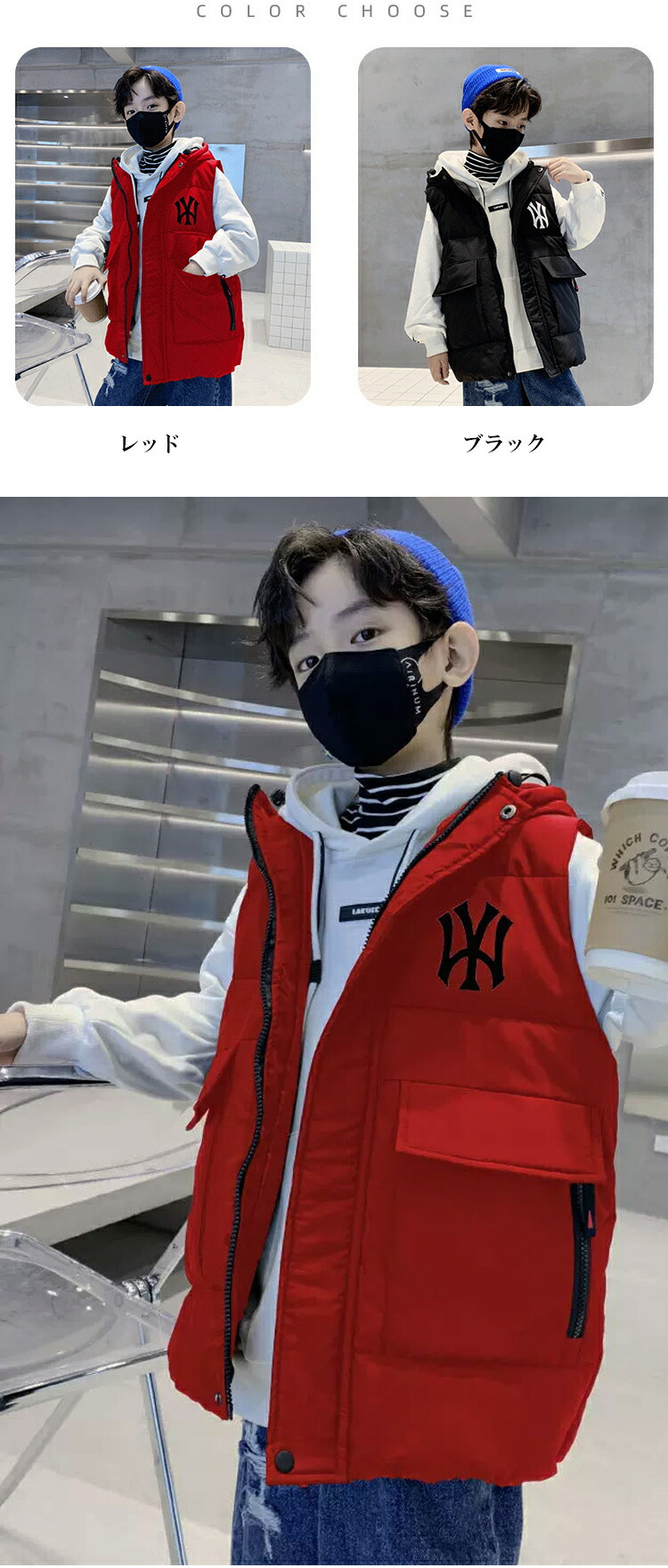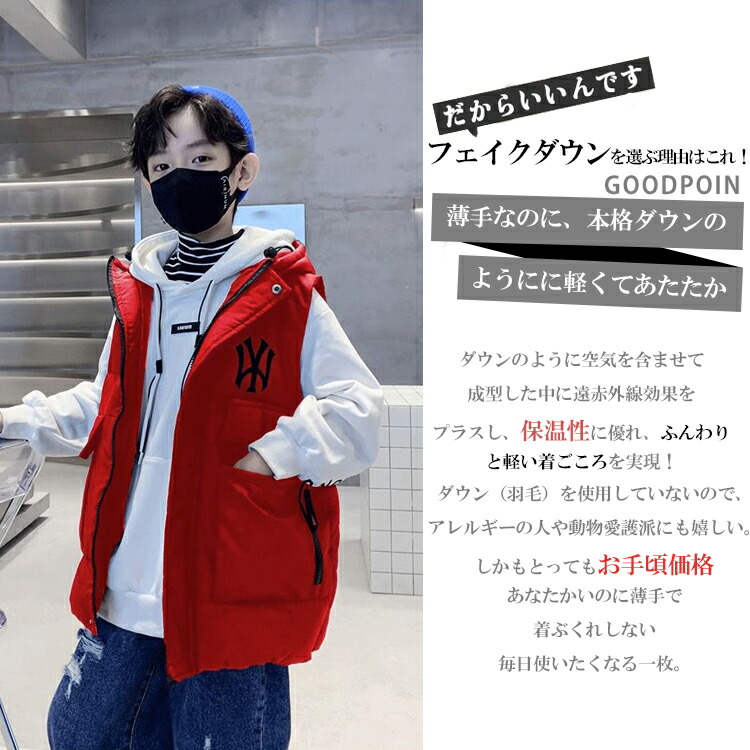 ■中綿入りで暖かい キッズフェイクダウンベスト■