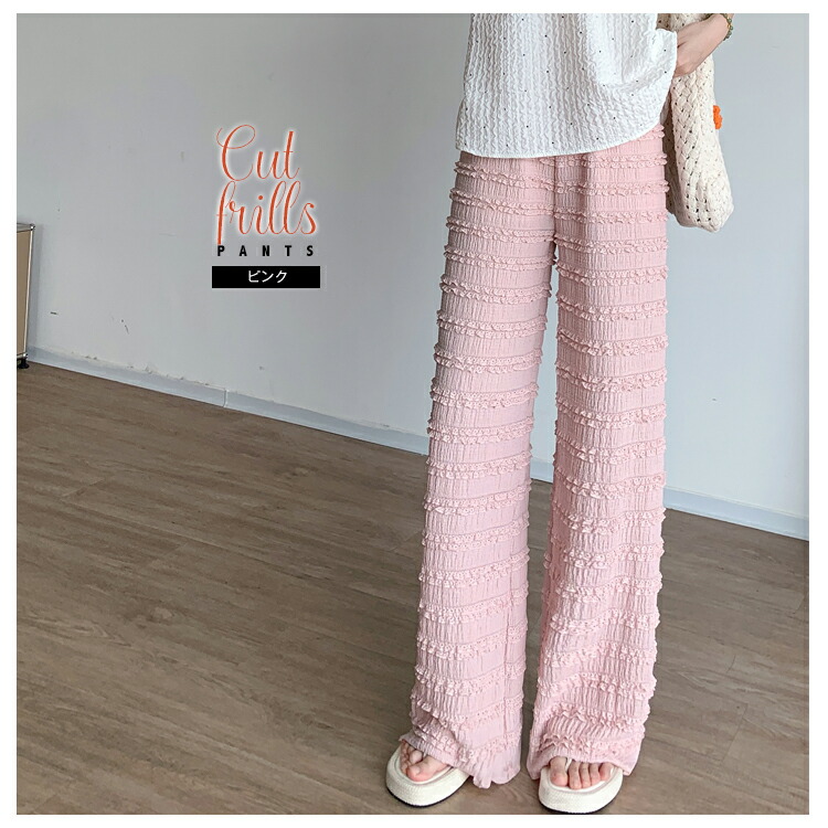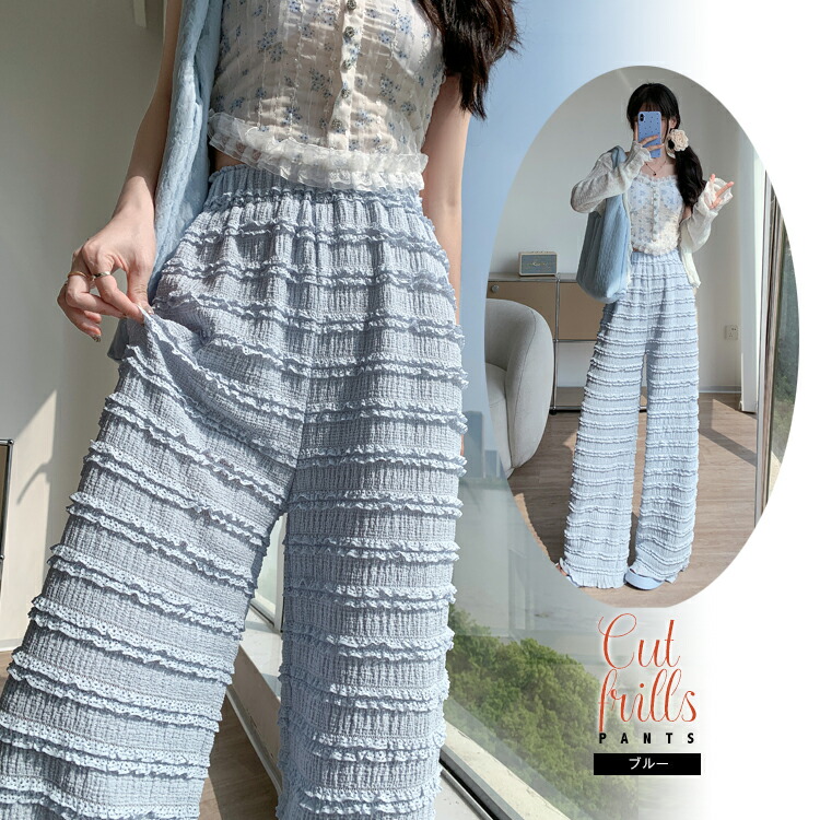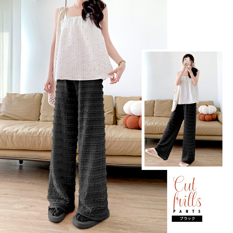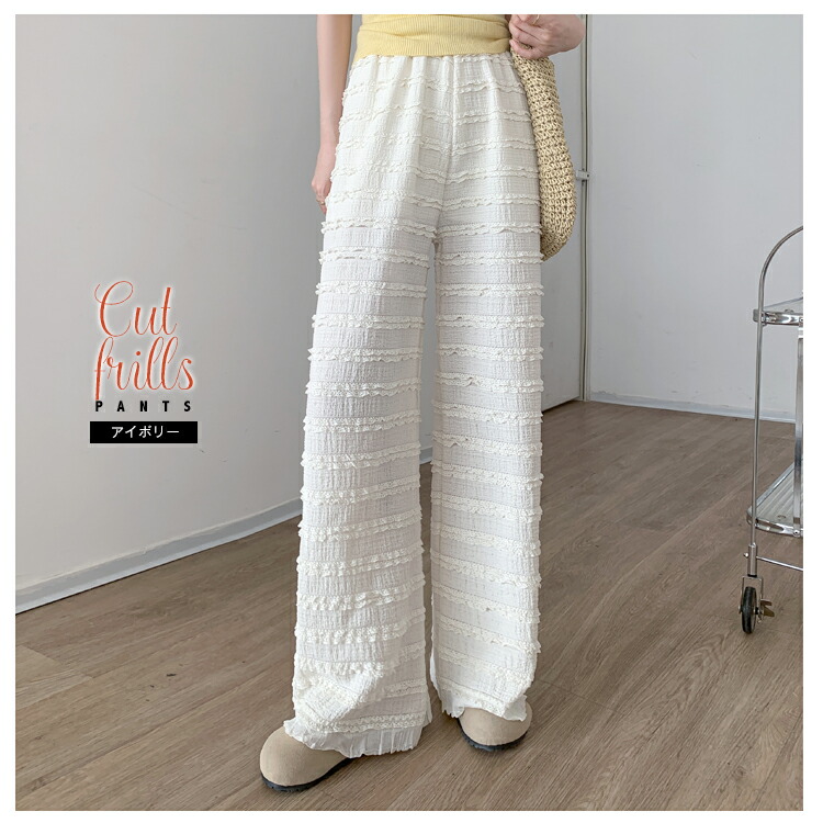 カットフリル ワイドパンツ レディース