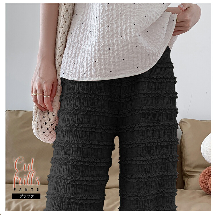 ■柔らか素材で楽ちん。フリルカットパンツ■