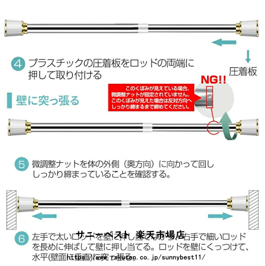 カーテンリング付き突っ張り棒 強力 全
