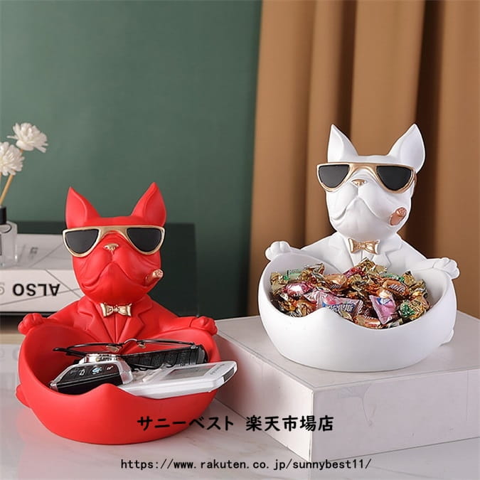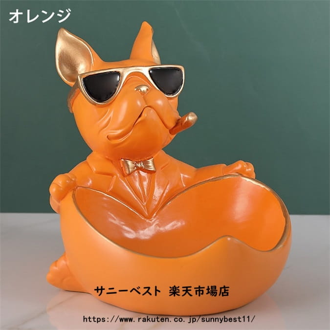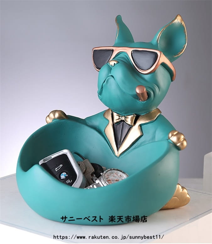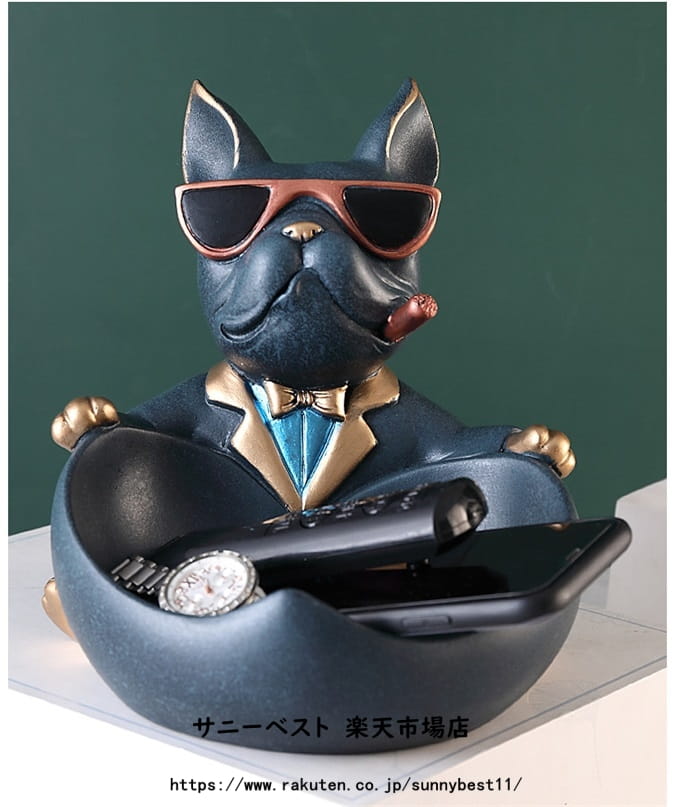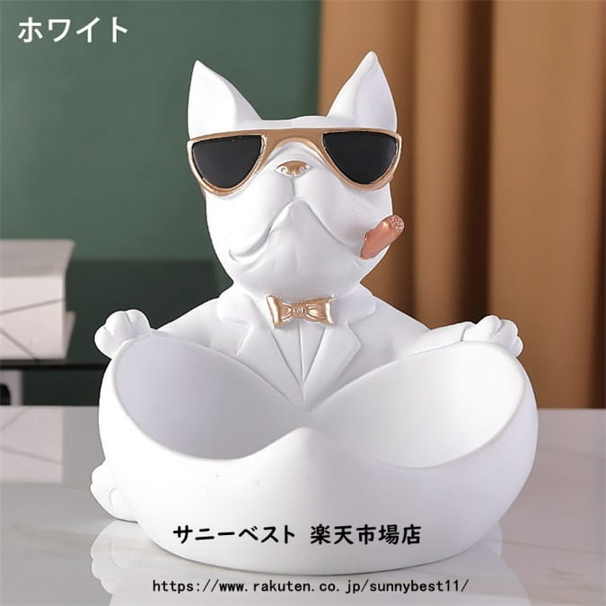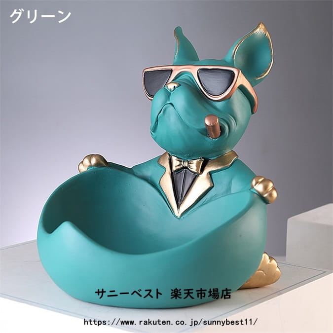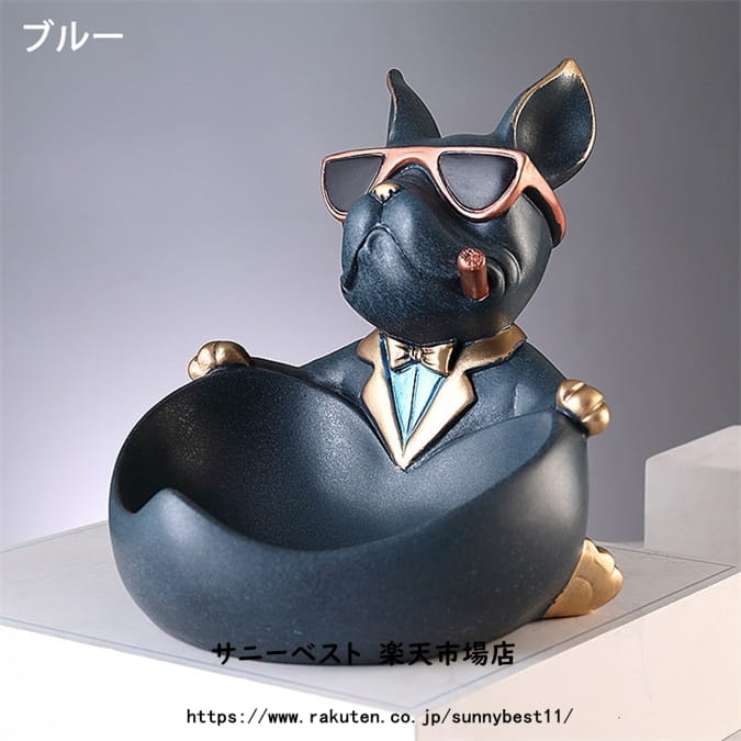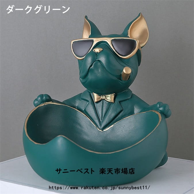 樹脂製で手描きのクールなブルドッグ着用メガネスタチュー収納ボックスオーガナイザー。