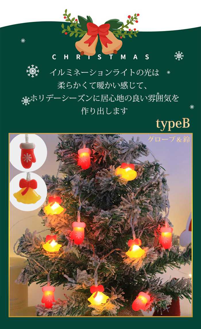 カラー: typeA(雪だるま&グローブ) typeB(グローブ&鈴) typeC(鈴&クリスマスツリー)