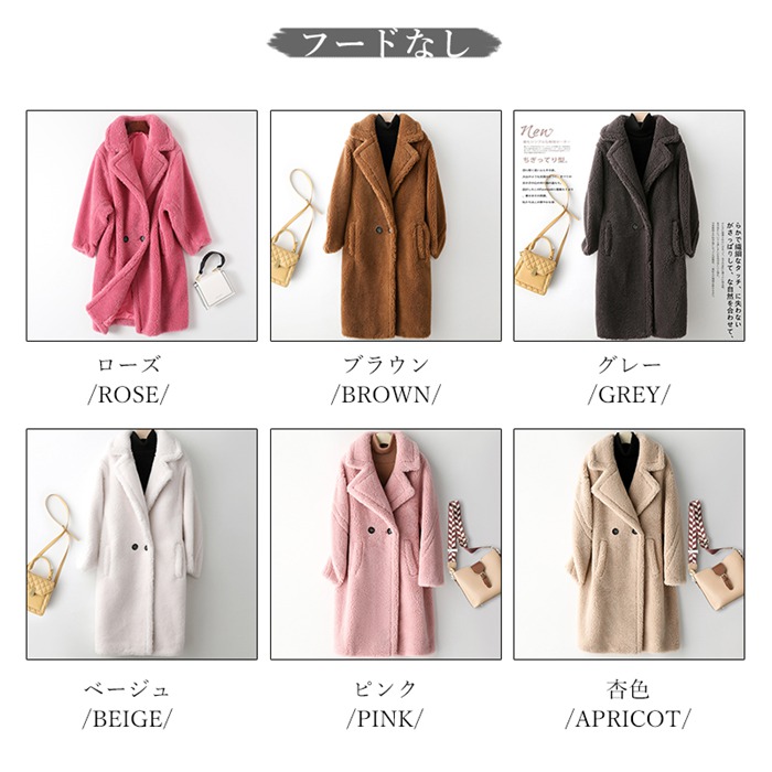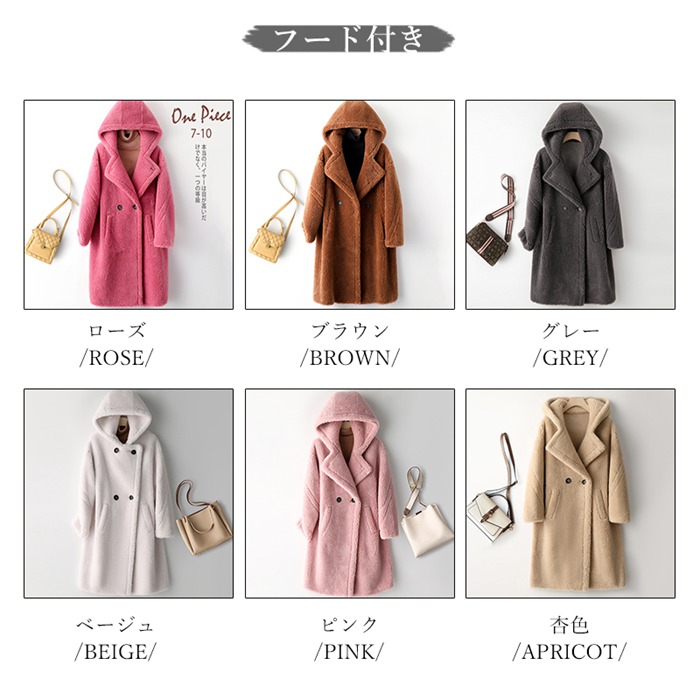 カラー: ローズ(フードなし) ブラウン(フードなし) グレー(フードなし) ベージュ(フードなし) ピンク(フードなし) 杏色(フードなし) ローズ(フード付き) ブラウン(フード付き) グレー(フード付き) ベージュ(フード付き) ピンク(フード付き) 杏色(フード付き)