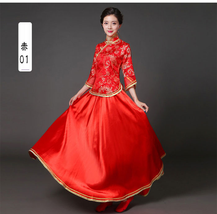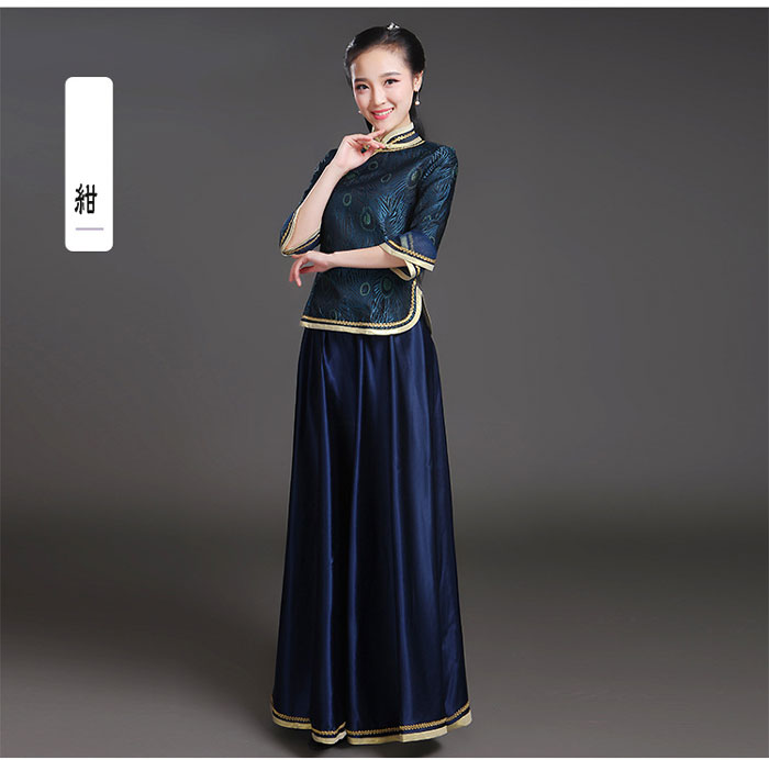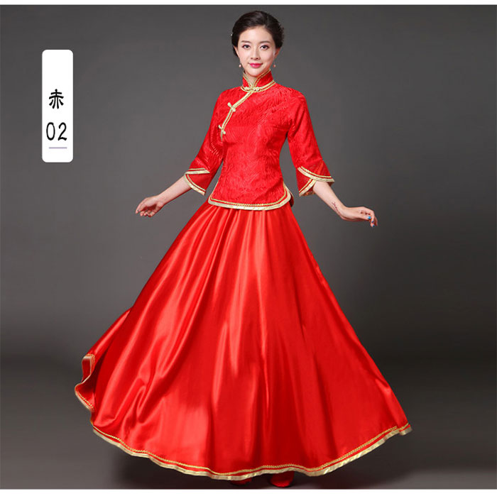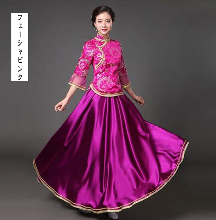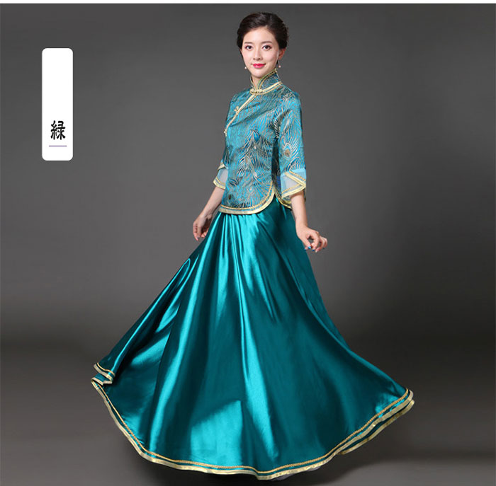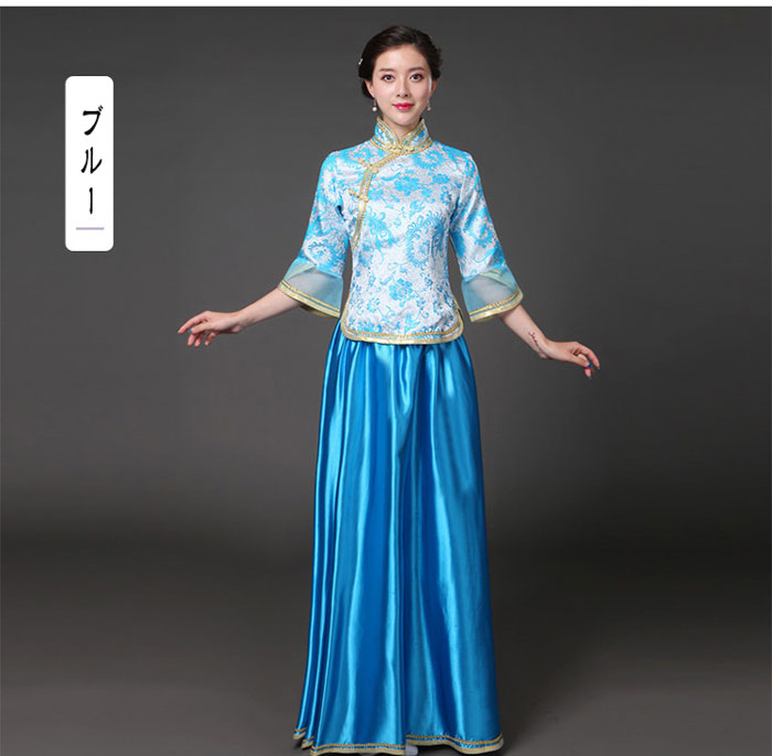 中華ドレス 上下セット 赤 緑 青 紺