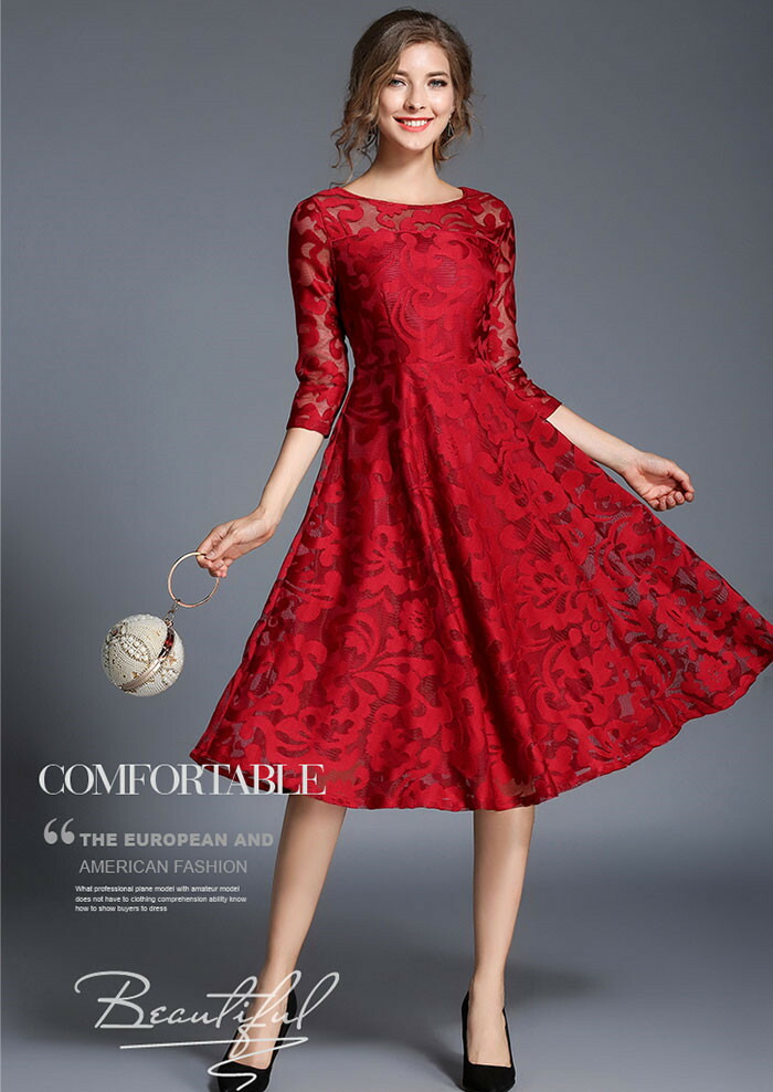 「送料無料」ドレス ロングドレス ミモレ丈ワンピ 総レース レースワンピ 結婚式 パーティードレス 袖あり ワンピース ドレス ロング丈ワンピ-ス 七分袖 ワンピース パーティー ドレス 二次会 披露宴 フォーマルドレス レデイース オシャレ エレガント 上品 お呼ばれ 大きいサイズ