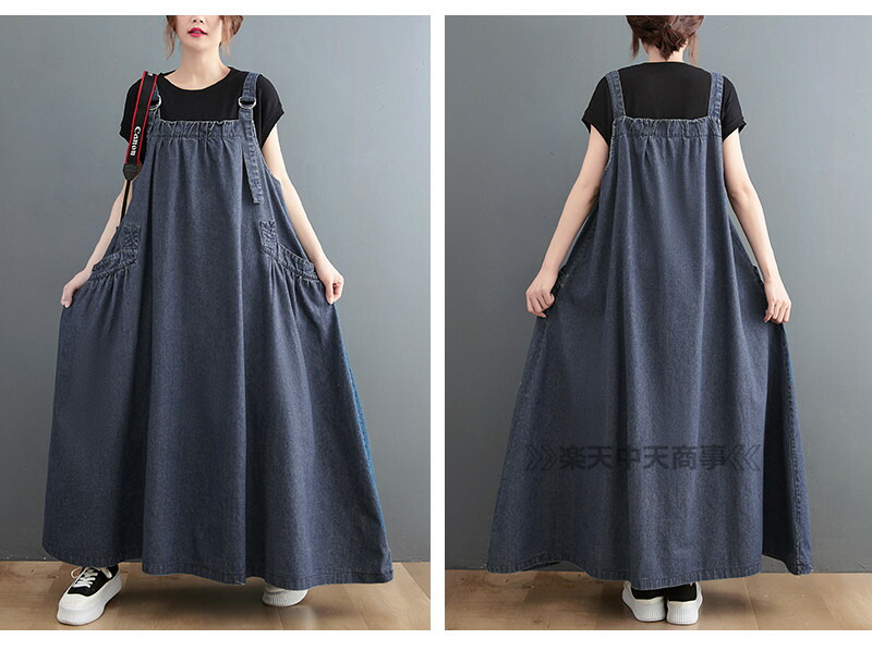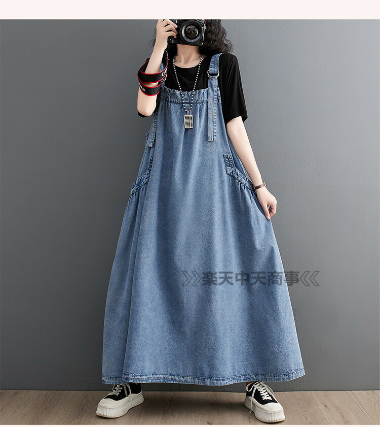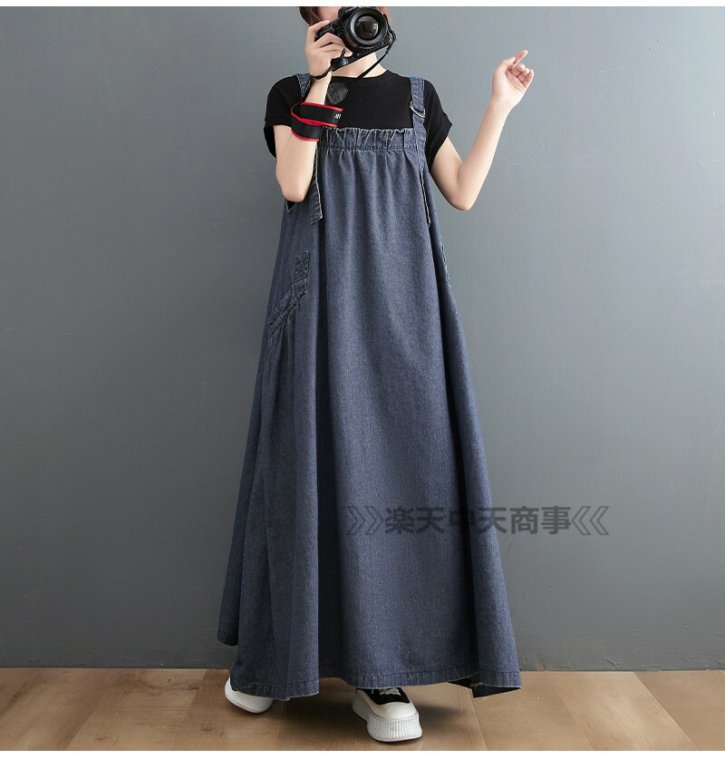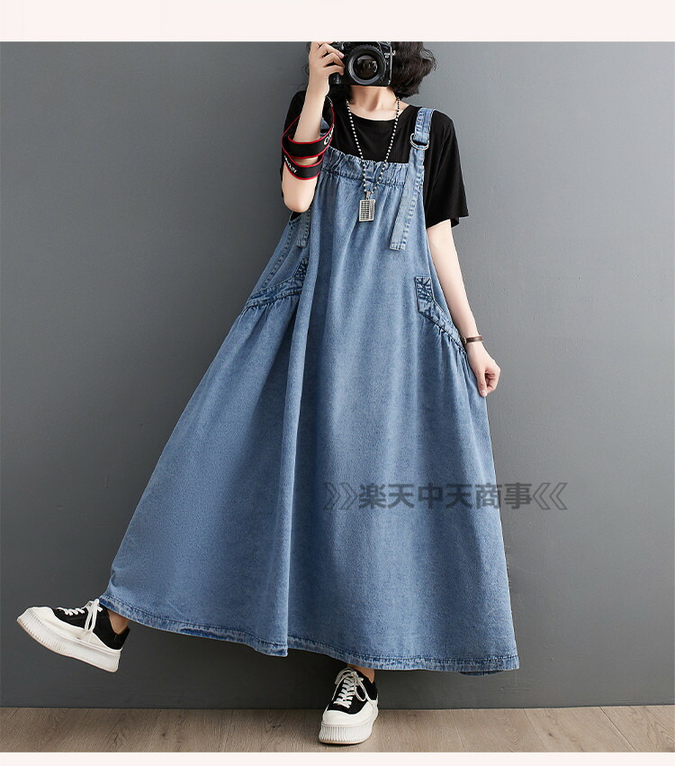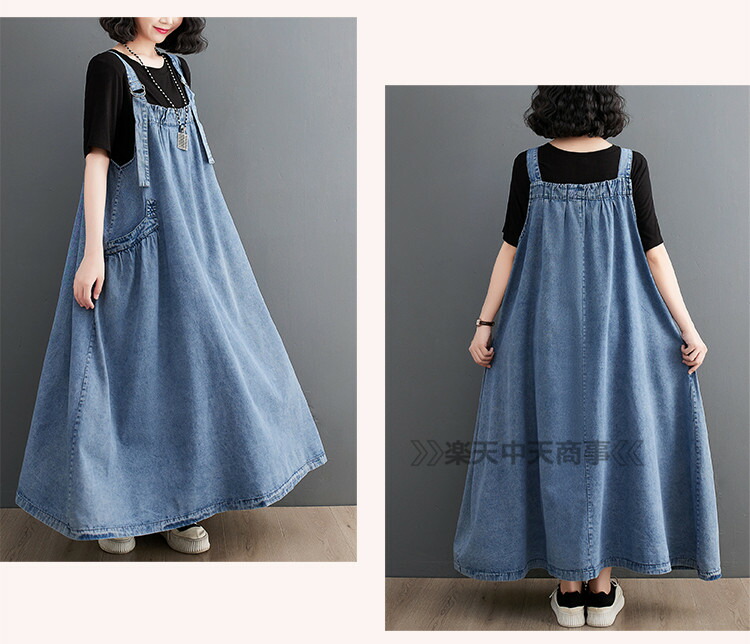 ジャンパースカート デニム デニムワンピース ロング マキシワンピース 春 秋 ロング丈 ジャンスカー サロペット 大きいサイズ デニムワンピ ポケット付き