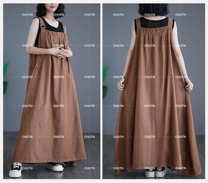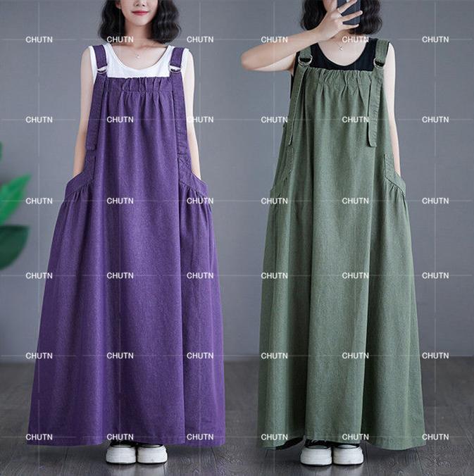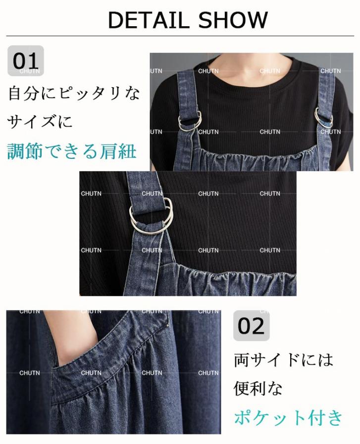 ジャンパースカート デニム サロペット ワンピース 夏 ロング丈 ゆったり 大きいサイズレディースファッション ジャンパースカート