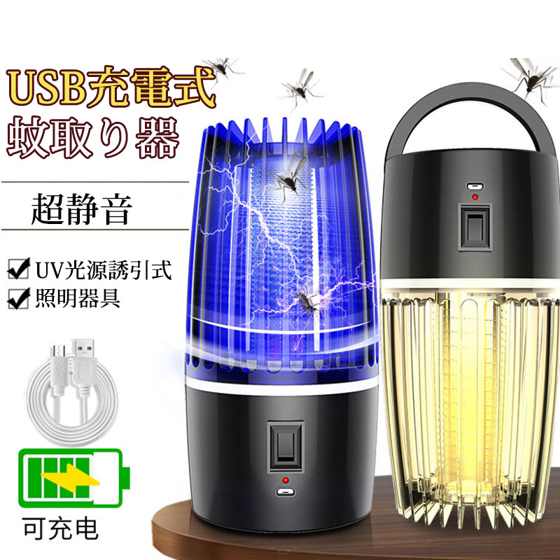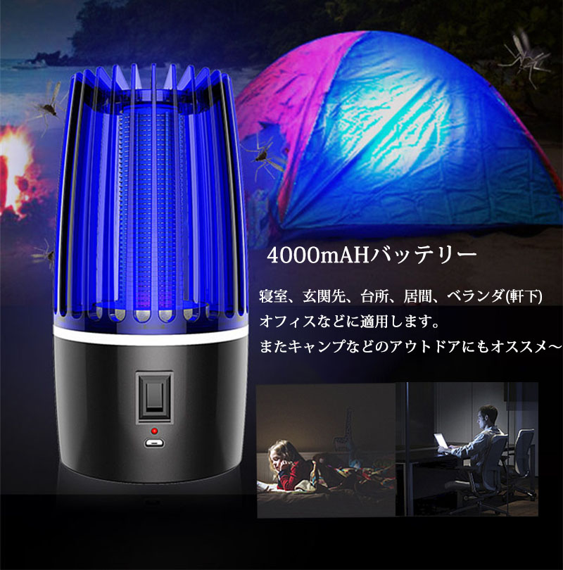 電撃蚊取り器 蚊取り器 UV光源誘引式 UVライト 4000mAh 薬剤不要日用品雑貨 文房具 手芸 日用消耗品 虫除け 殺虫剤 捕獲 誘引器
