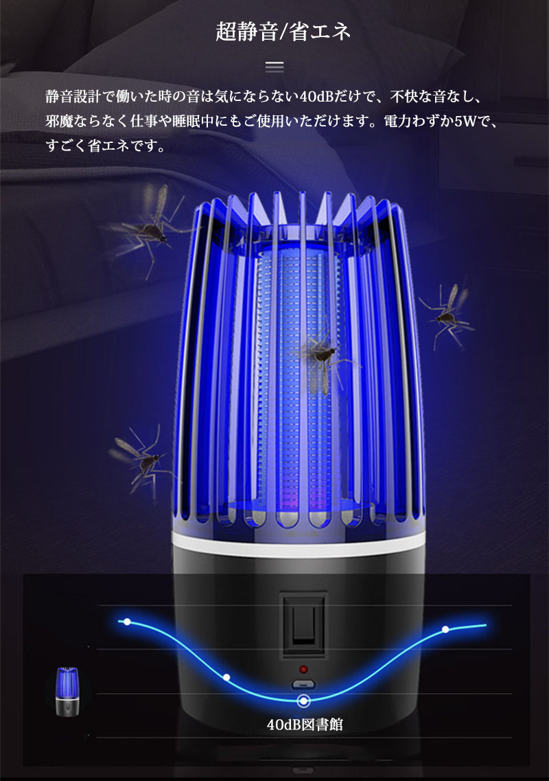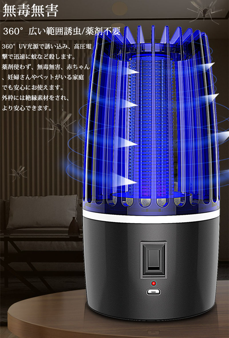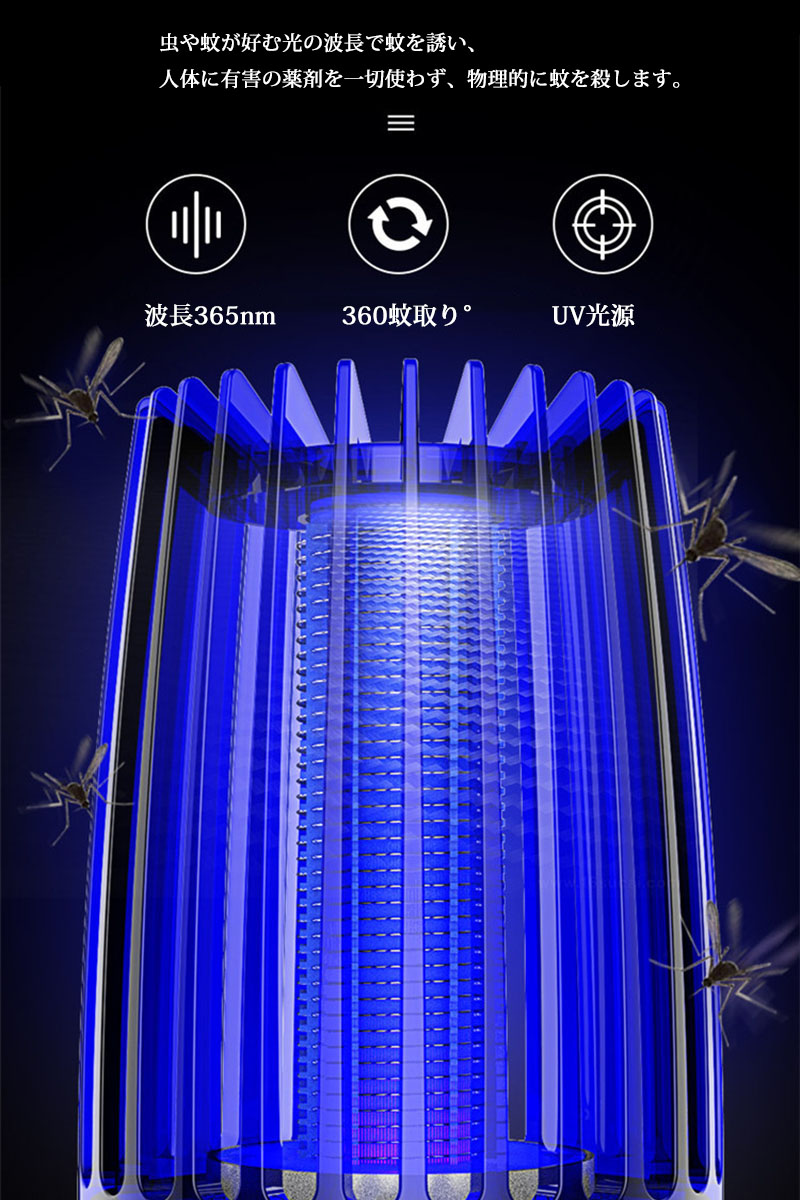360°UV光源で誘い込み、高圧電撃で迅速に蚊など殺します。