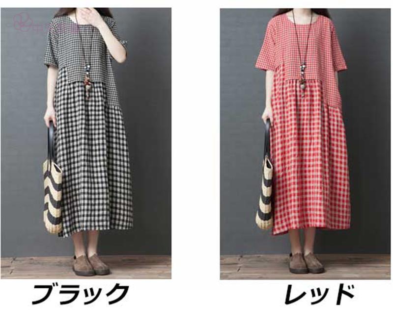 【chuten】ワンピース 綿麻 ワンピ レディース チェック柄 森ガールワンピース マキシ丈 ゆったり 大きいサイズ 半袖 フレア フォーマル きれいめ 体型カバー 大人 ロング丈ワンピース ワンピ パーティー ドレス 通勤 レディース 森ガールワンピース 着痩せ バーオーバーサイズ マキシ丈ワンピース ワンピース ファッション おしゃれ【高品質】