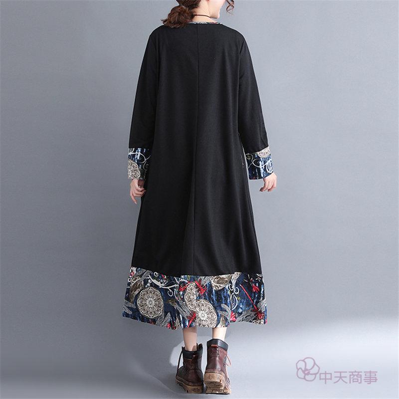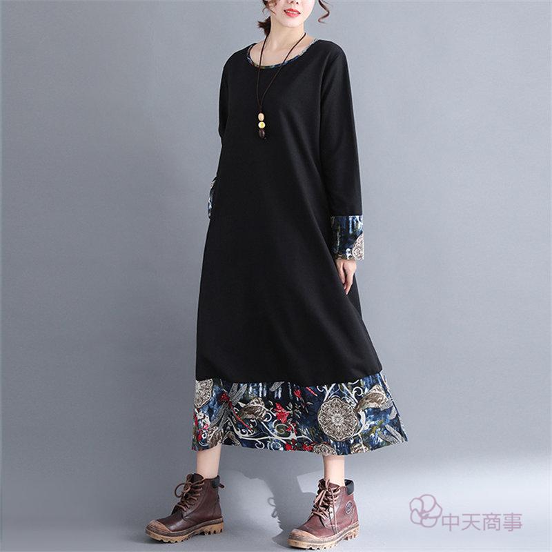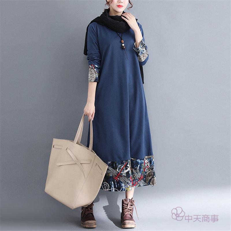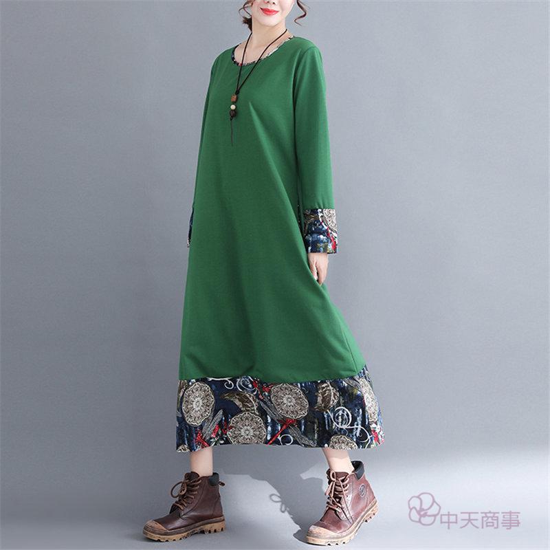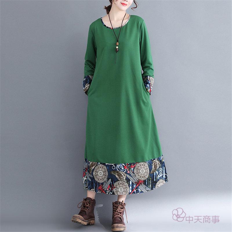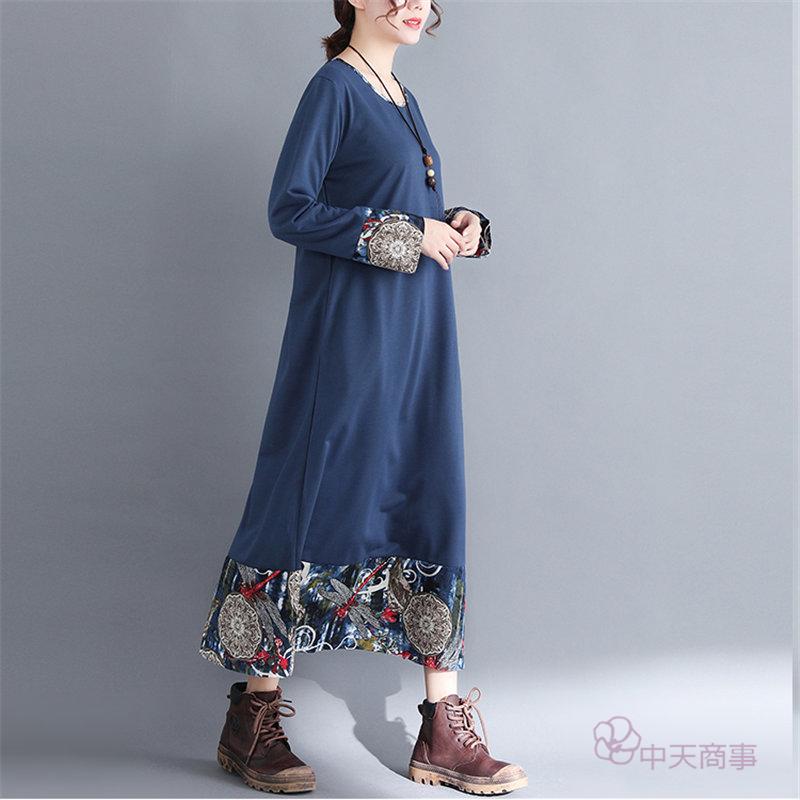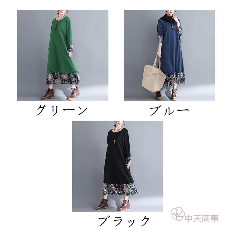 【chuten】ワンピース 丸首 レディース 花柄 2020秋 ワイドワンピース 長袖 ロング丈 切り替え マキシ丈ワンピース エスニックスタイル 民族風 ハイウエスト チュニック エキゾチック オシャレ 上品 淑女 秋物 優雅 普通着「送料無料」ワンピース リネンワンピース 優雅 レトロ 大きいサイズ お出かけ 女性用 おしゃれ 2020新作 きれいめ 上品 就活[M/L/XL/XXL]高品質
