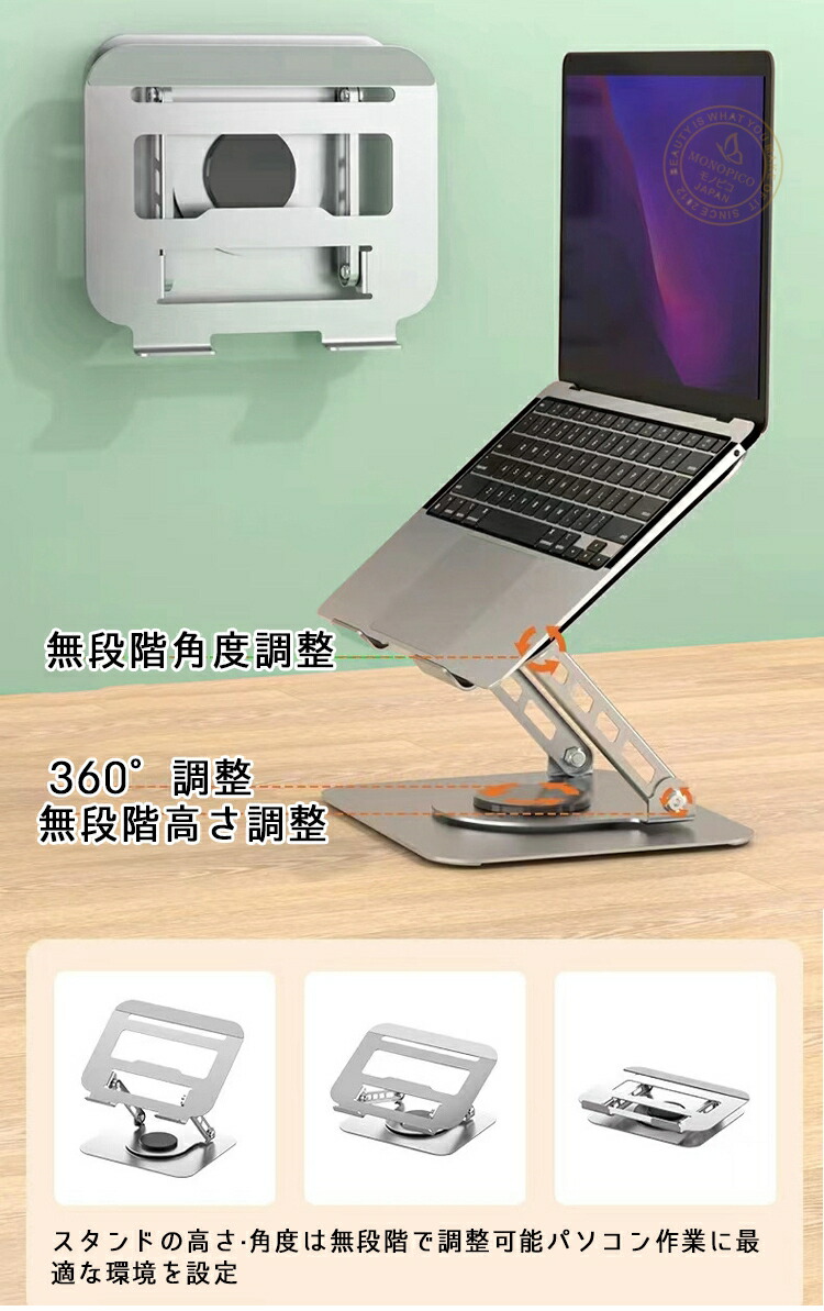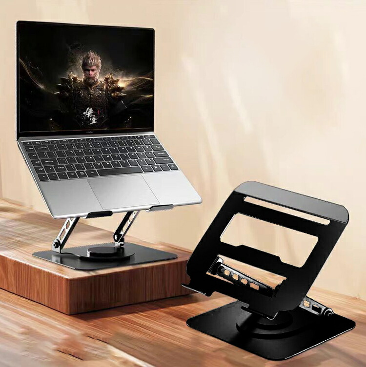 高さ&角度無段階調節の薄型ノートパソコンスタンド 放熱設計で風通し抜群 腰痛や猫背改善にも 折り畳み式でコンパクト、高級感ある木製パネルで温かみのあるデザインです
