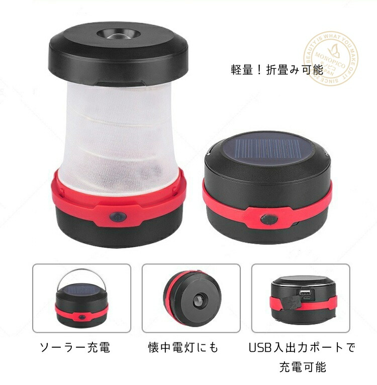 地震 災害対策 3WAY高輝度LEDランタン ソーラーランタン ソーラー充電器 LEDライト スライド式 吊り下げ 軽量 スマホ充電 キャンプ用品 USB充電 "
