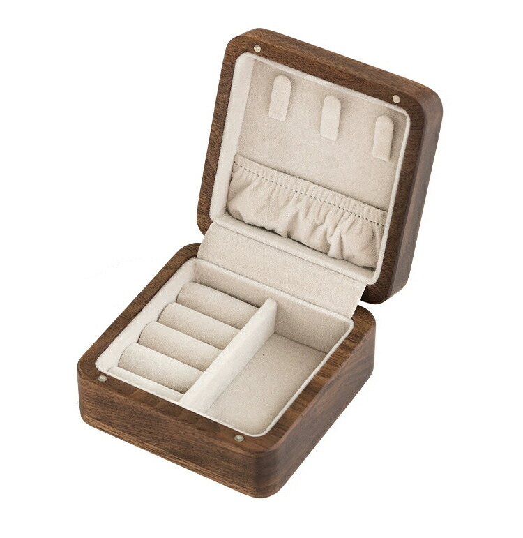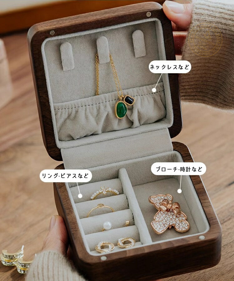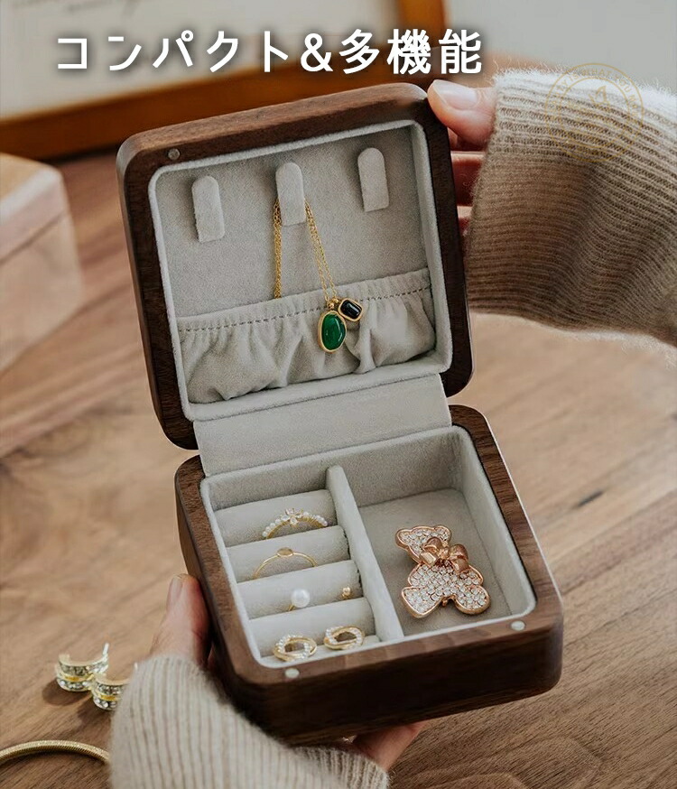 ジュエリーケース アクセサリーケース 木製 ウォールナット ジュエリーボックス 高級 携帯用 アクセサリーボックス 収納 コンパクト ジュエリーボックス 木製 プレゼント 旅行用