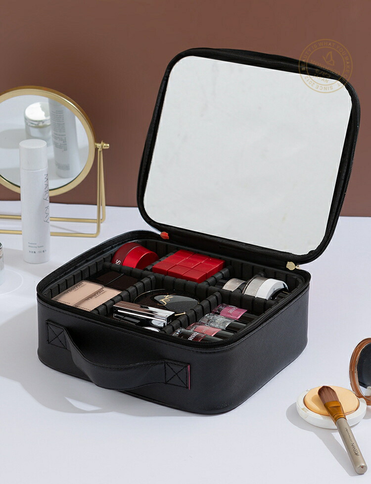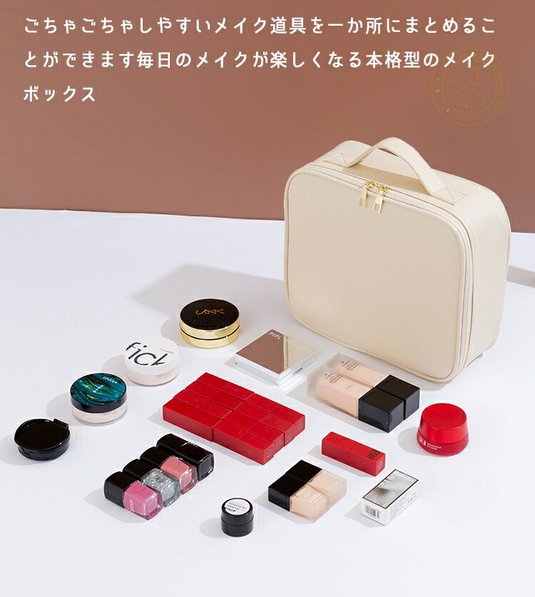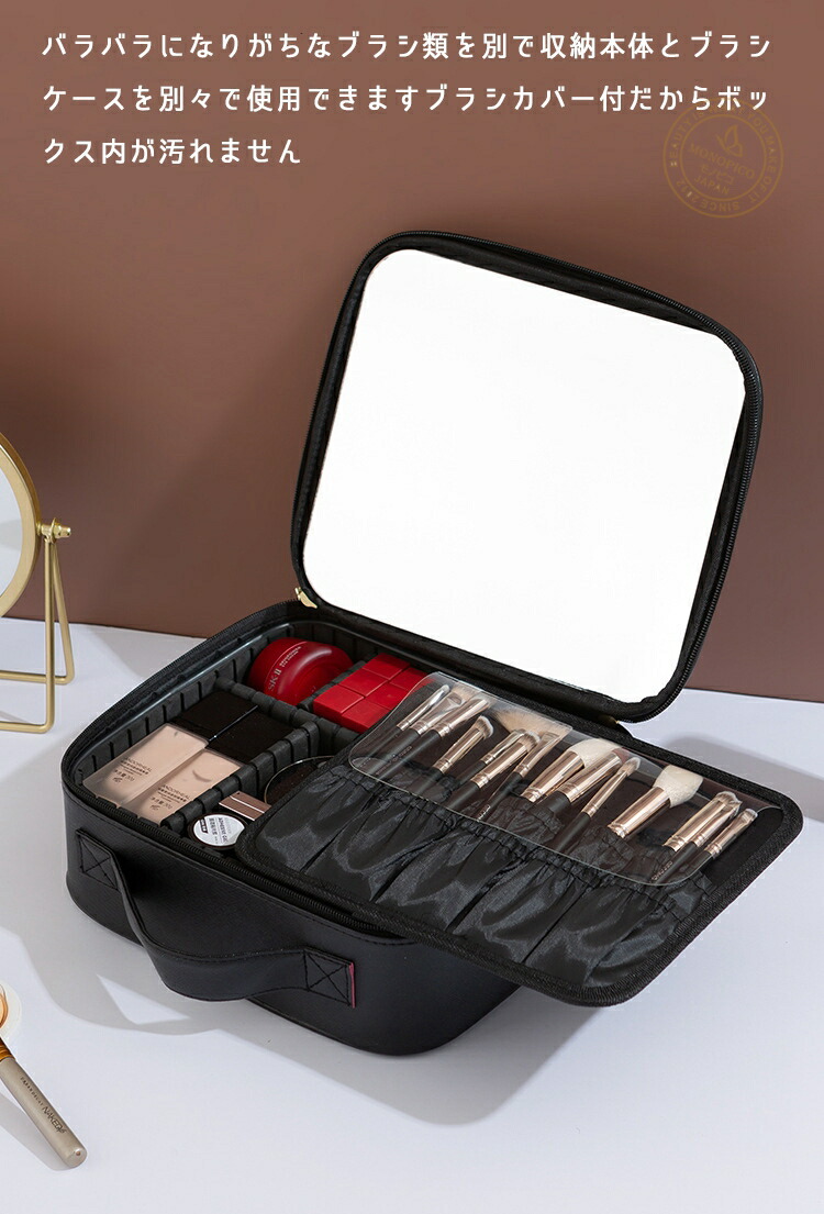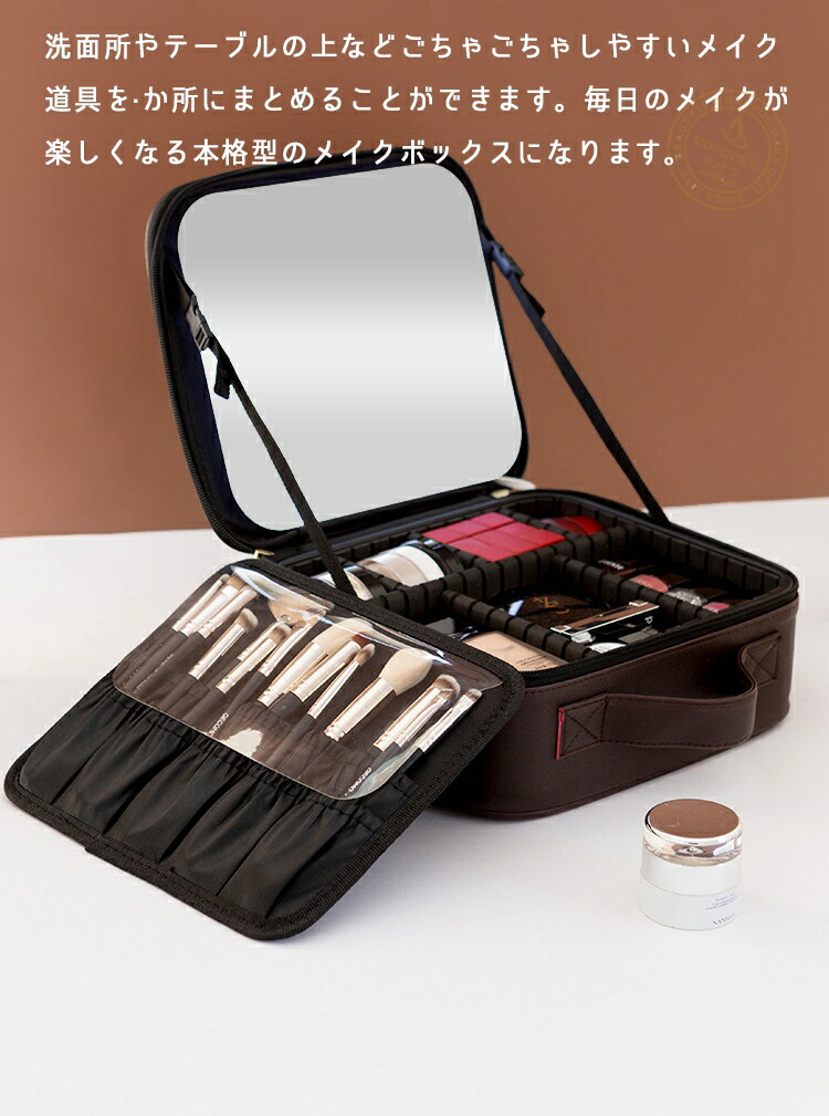 コンパクトで大容量 メイクボックス 鏡付きコスメボックスプロ仕様の機能的フルメイク収納 取り出しやすいくおしゃれなコスメ収納化粧ボックス
