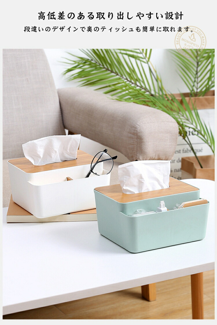 底上げ 機能 で ストレスフリー 収納 付き ティッシュ ボックス 多機能 シンプル デザイン が かわいい マルチ ケース 卓上 テーブル ドレッサー