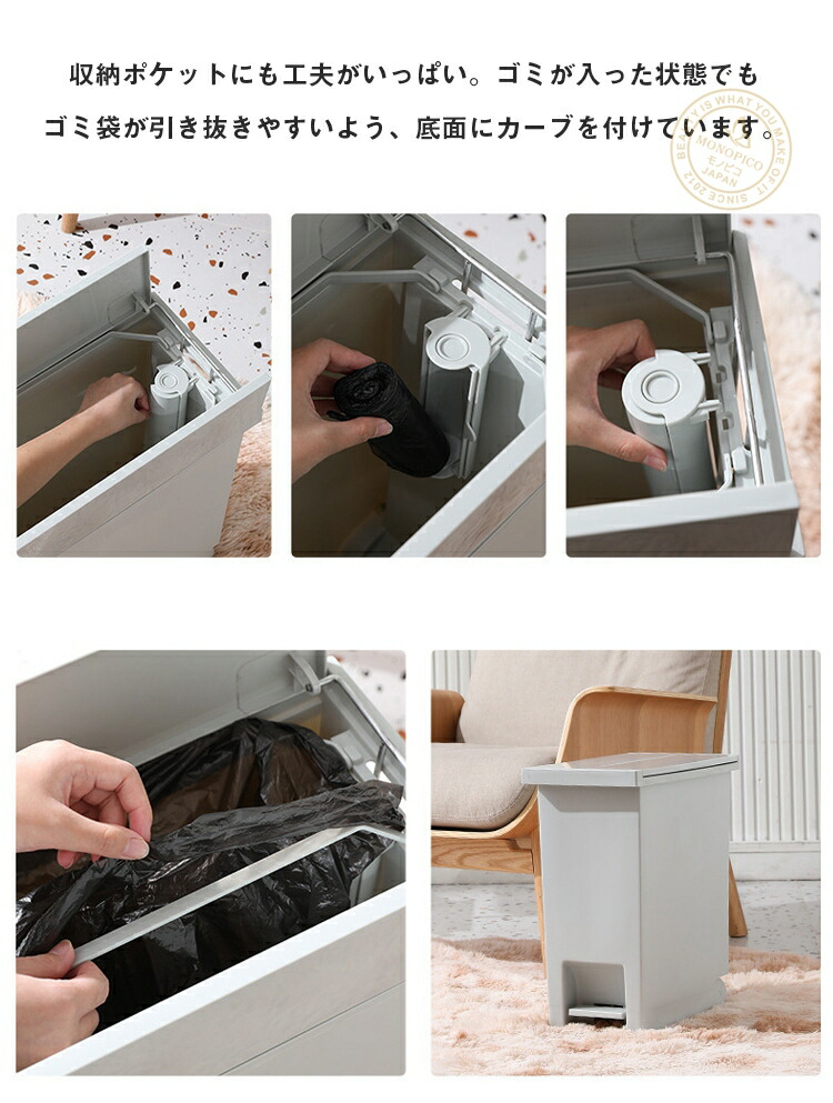 ゴミ箱 ホワイト ブラック ポケット