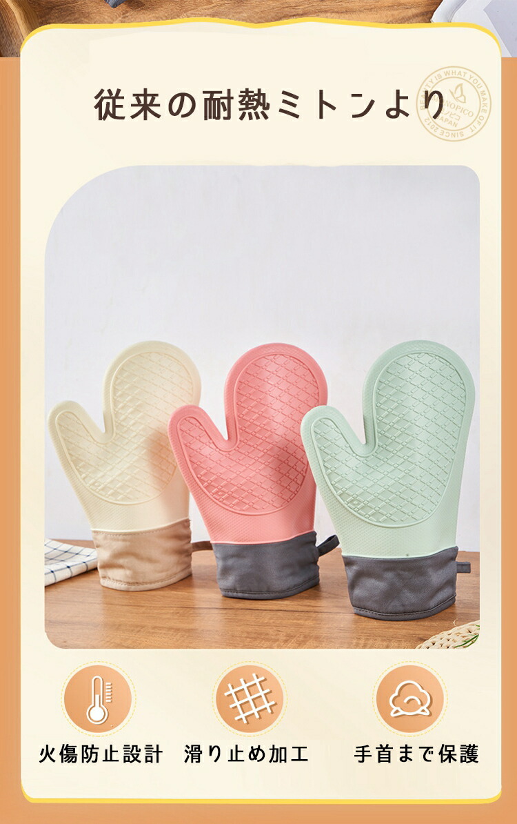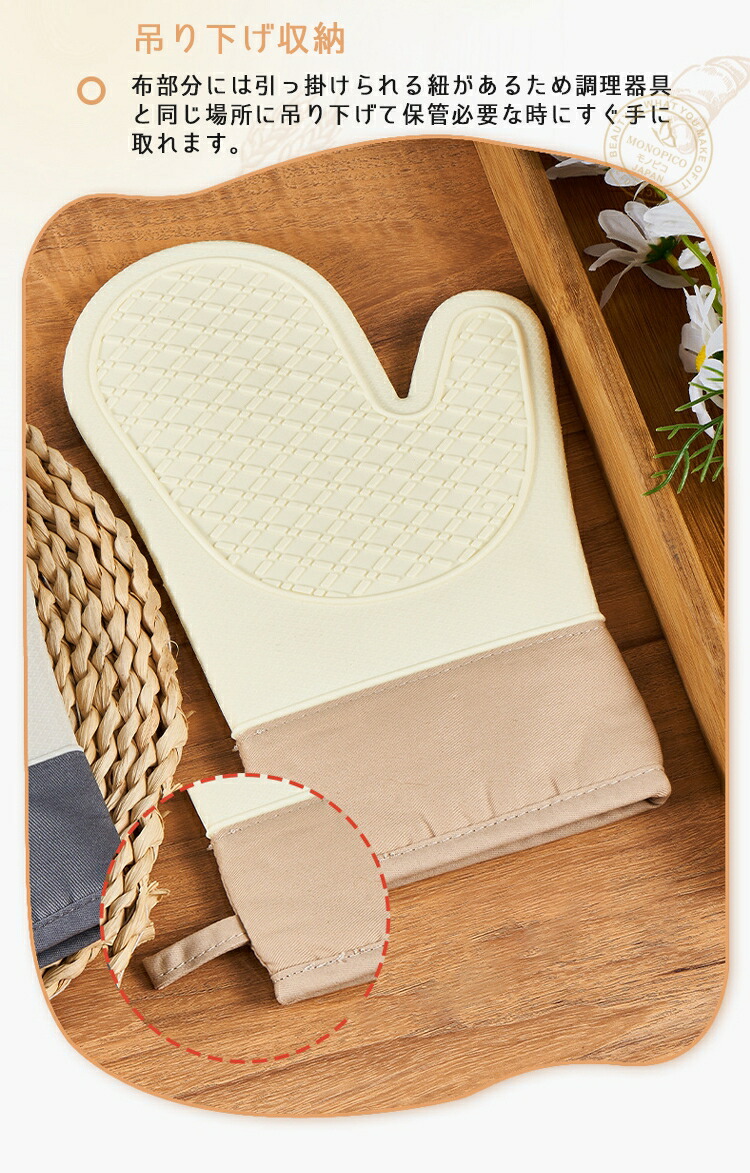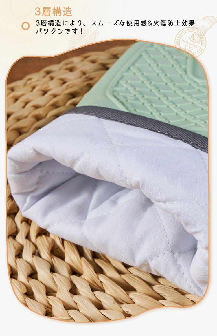 両手用2枚セット 手に優しい 断熱グローブ 耐熱300℃ の おしゃれ でかわいい オーブンミトン アツアツのお鍋がしっかり持てる